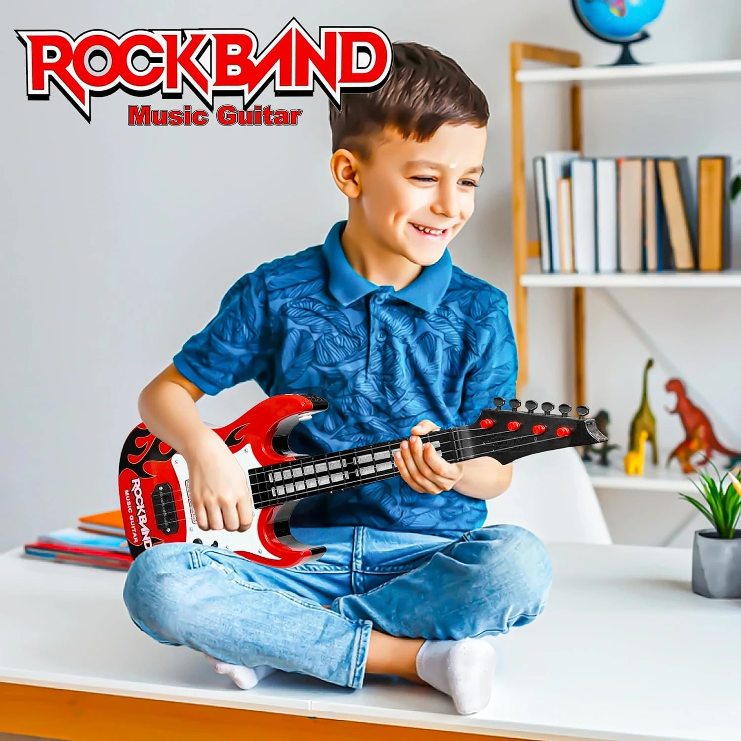 Rockband Musical Guitar with Lights & Pre-Stored Tunes – Battery-Operated Kids Guitar Toy