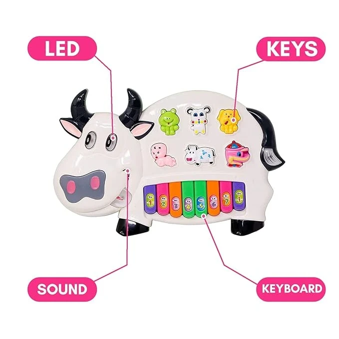 Musical Cow Piano Toy with Flashing Light and Sound for Toddlers and Kids