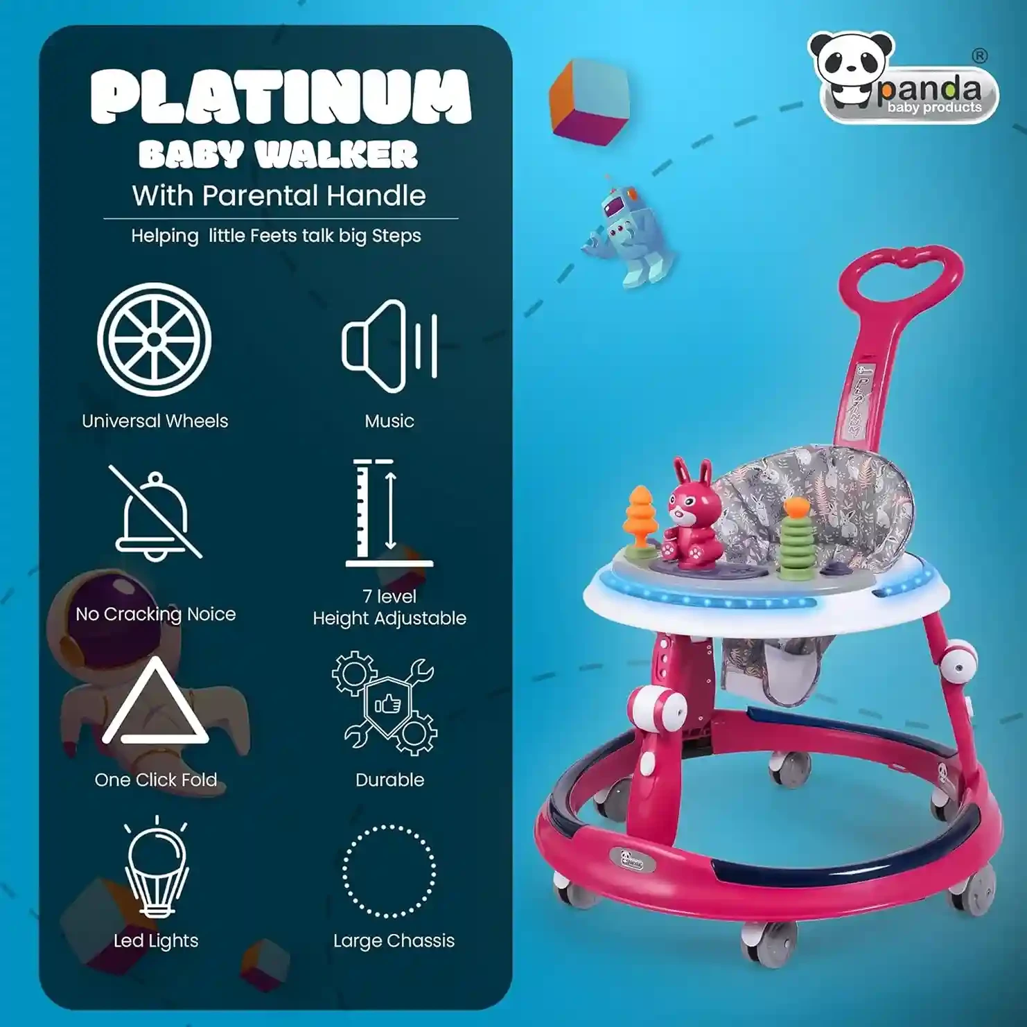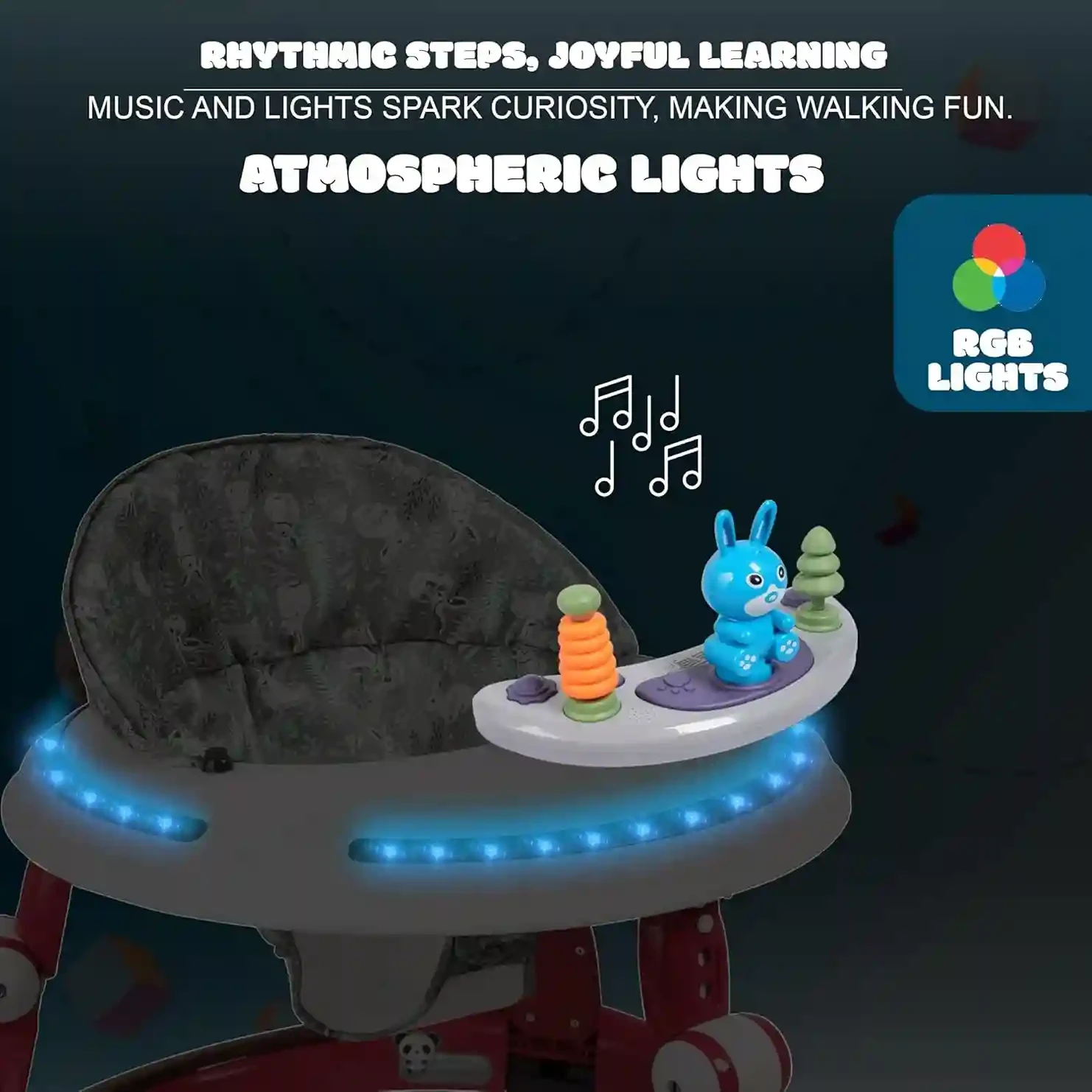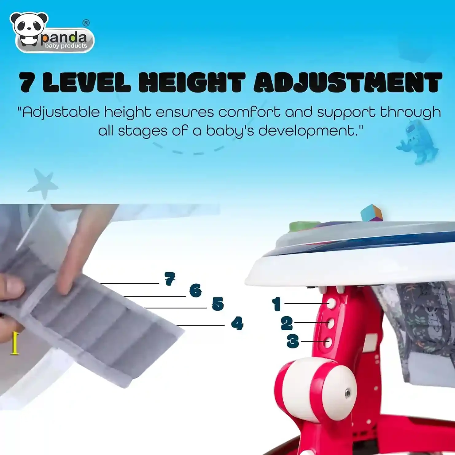 Advanced Platinum Baby Walker with 7-Level Height Adjustment, Musical Toy Tray & 360° Wheels – For Babies 6-24 Months (Red, RGB Platinum)