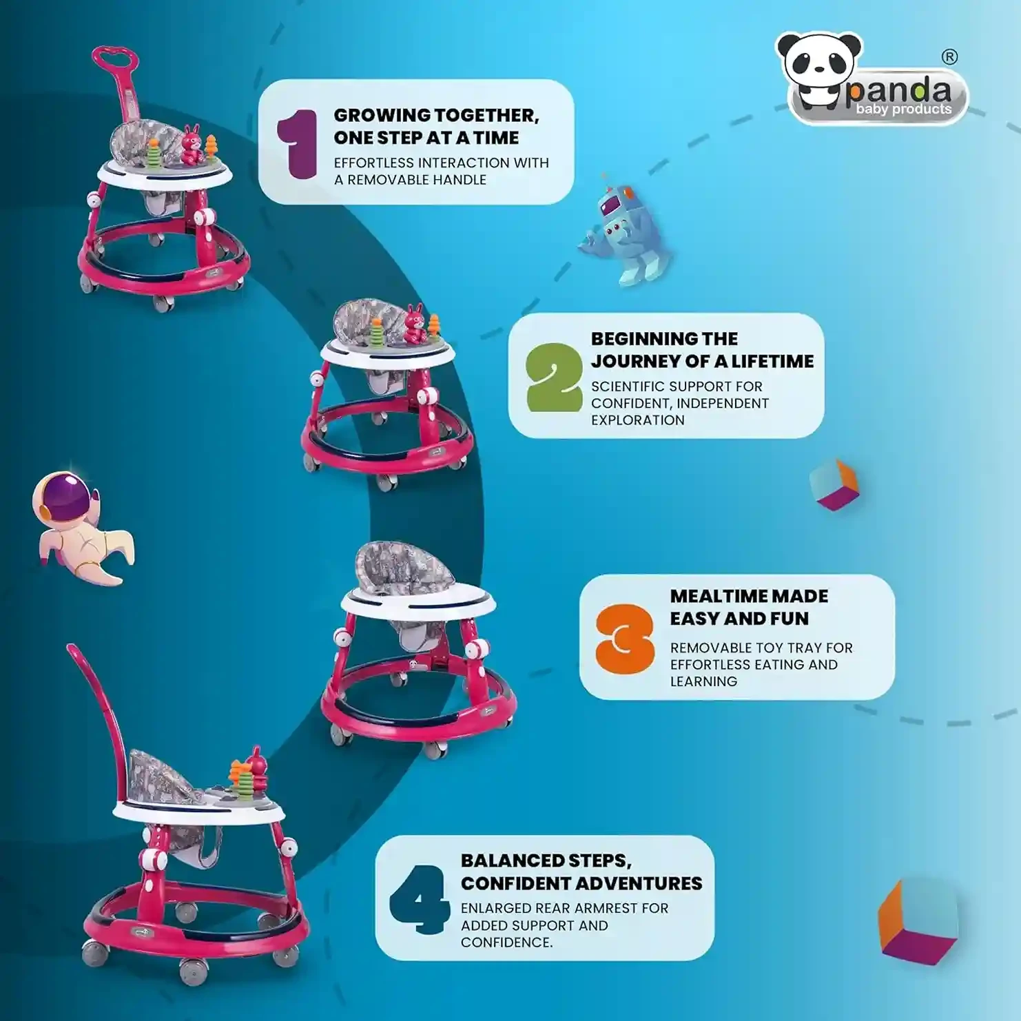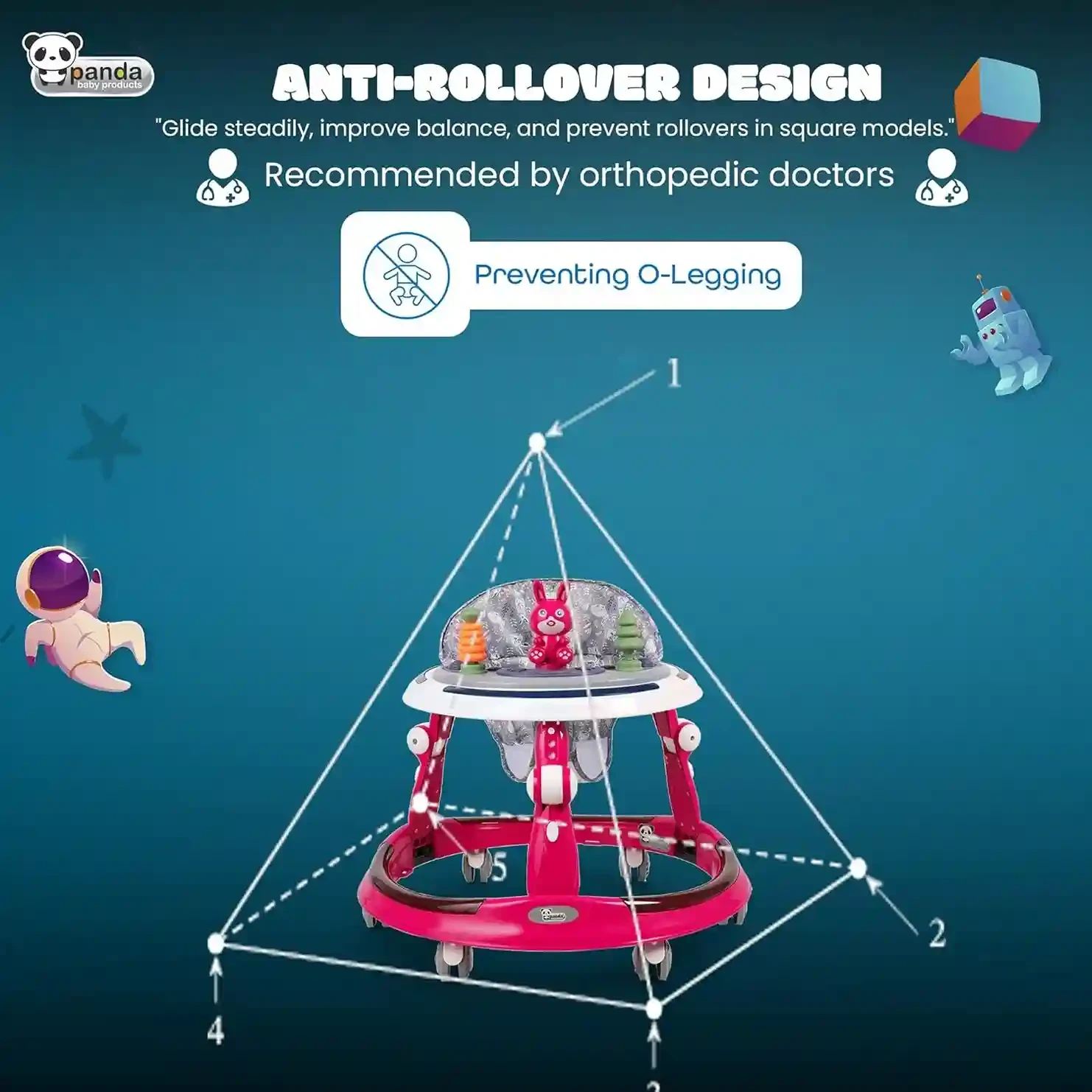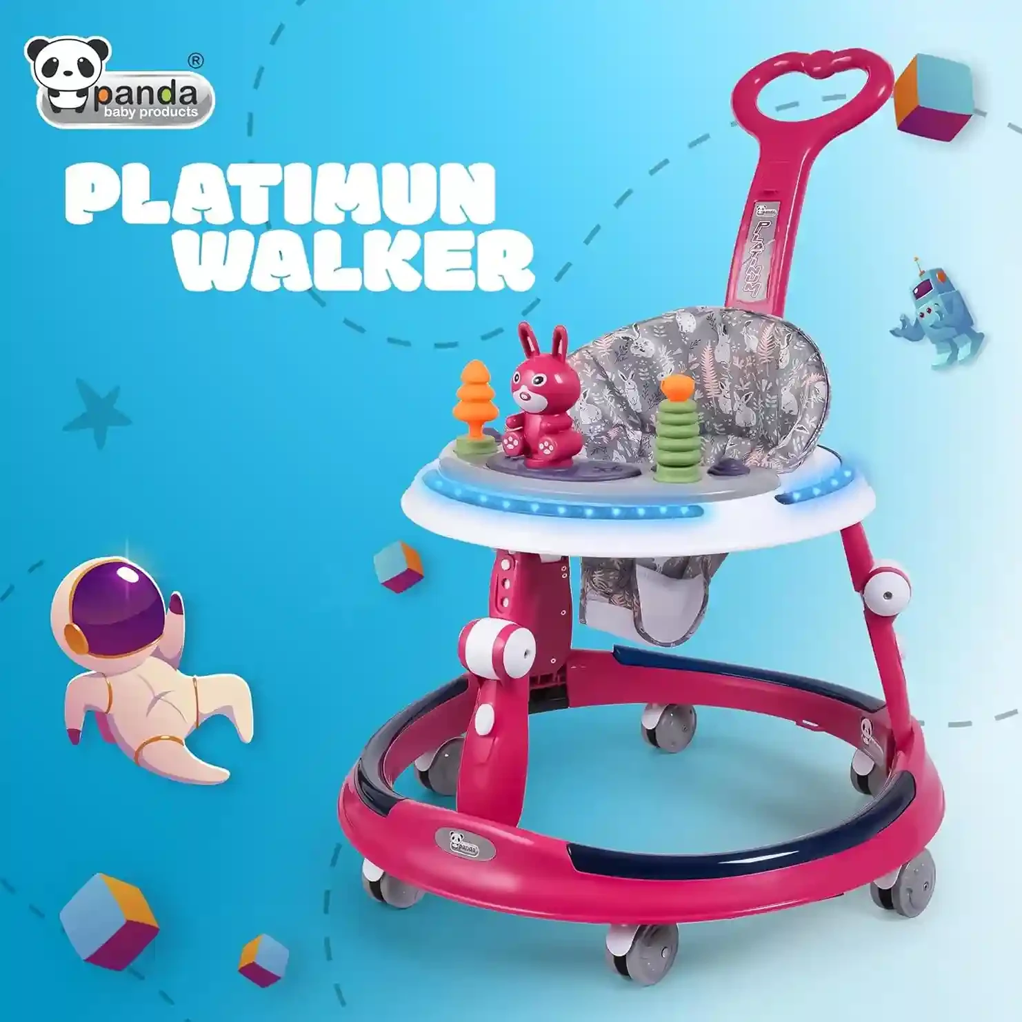 Advanced Platinum Baby Walker with 7-Level Height Adjustment, Musical Toy Tray & 360° Wheels – For Babies 6-24 Months (Red, RGB Platinum)