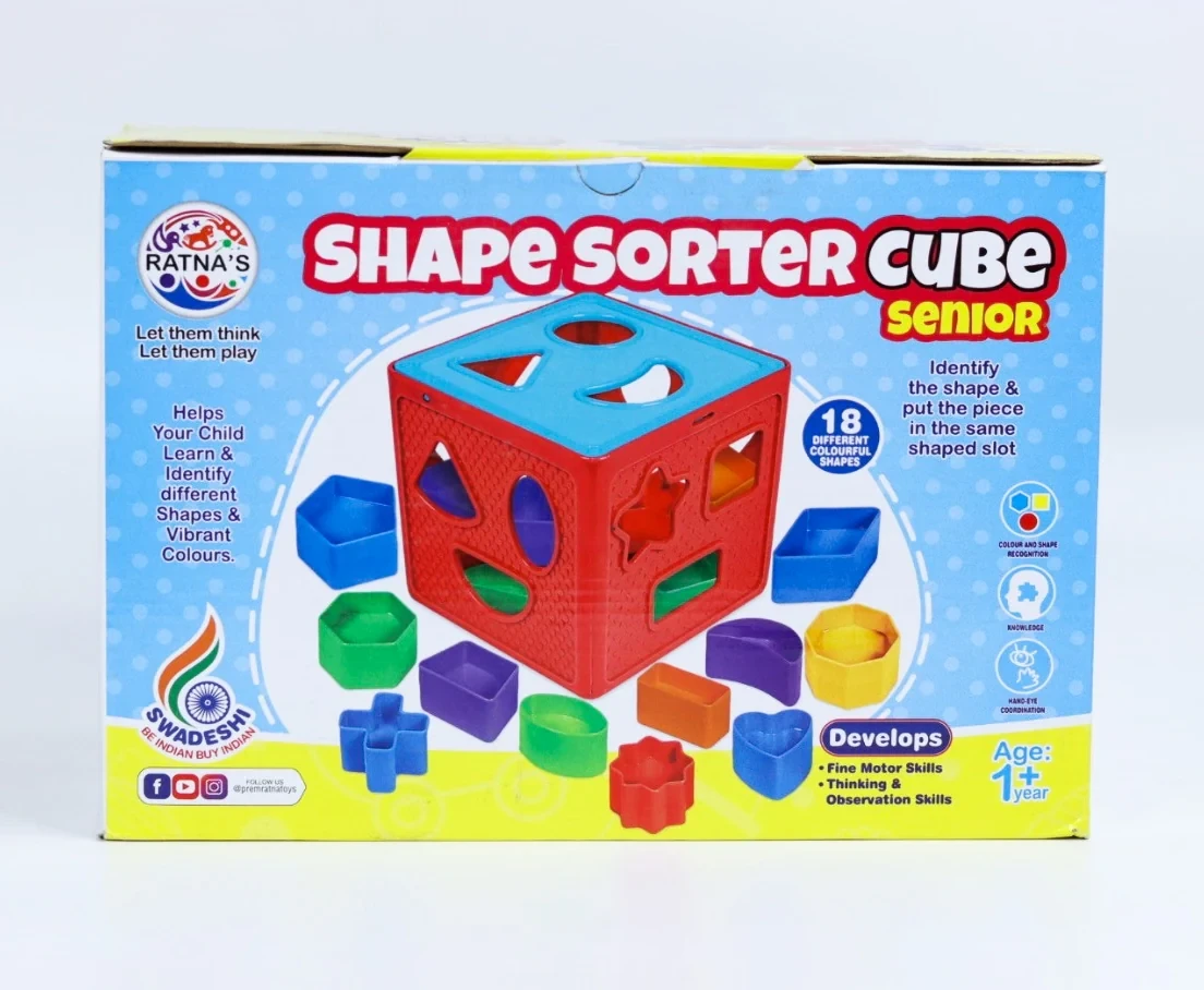 Shape Sorter Cube Senior with 18 Colorful Geometric Blocks