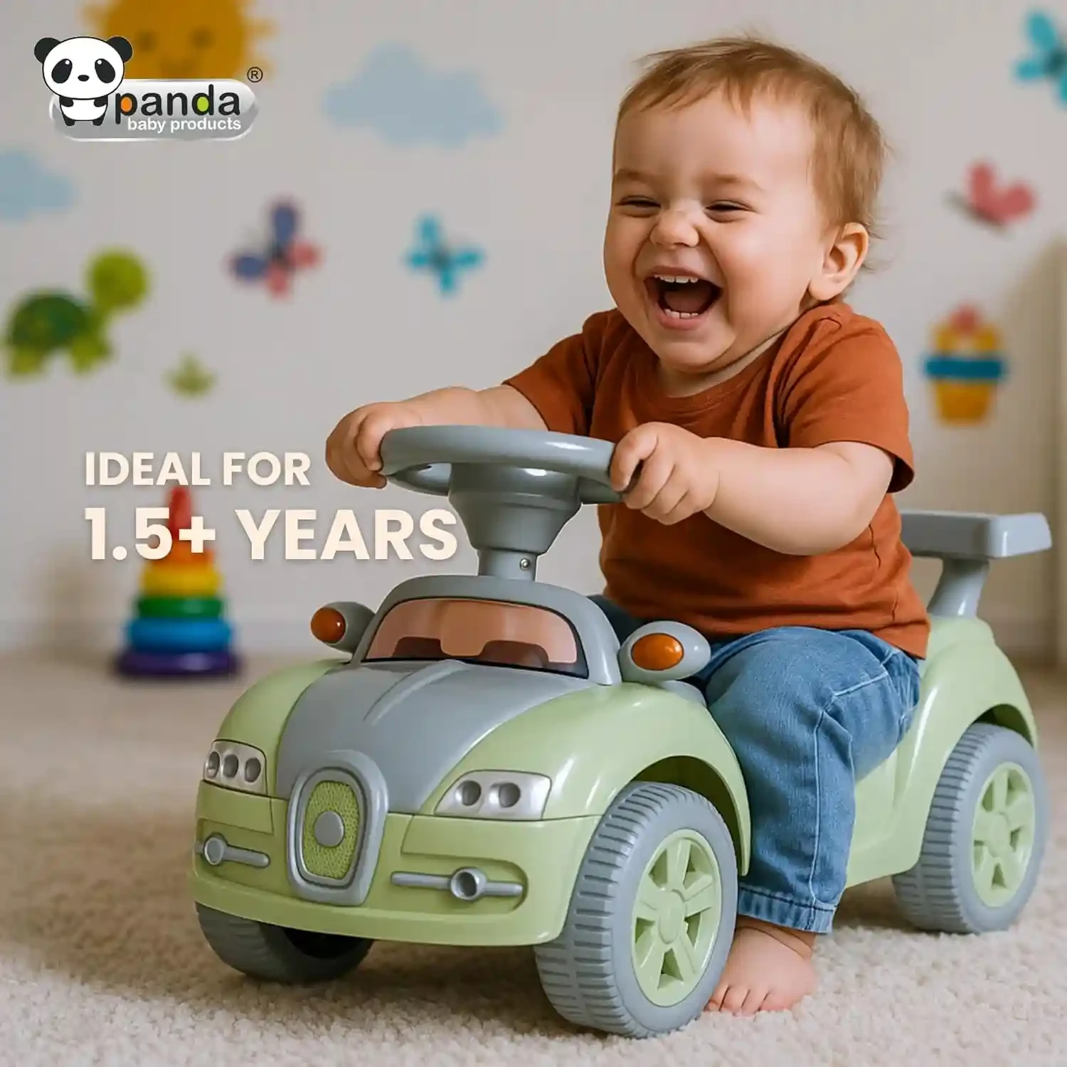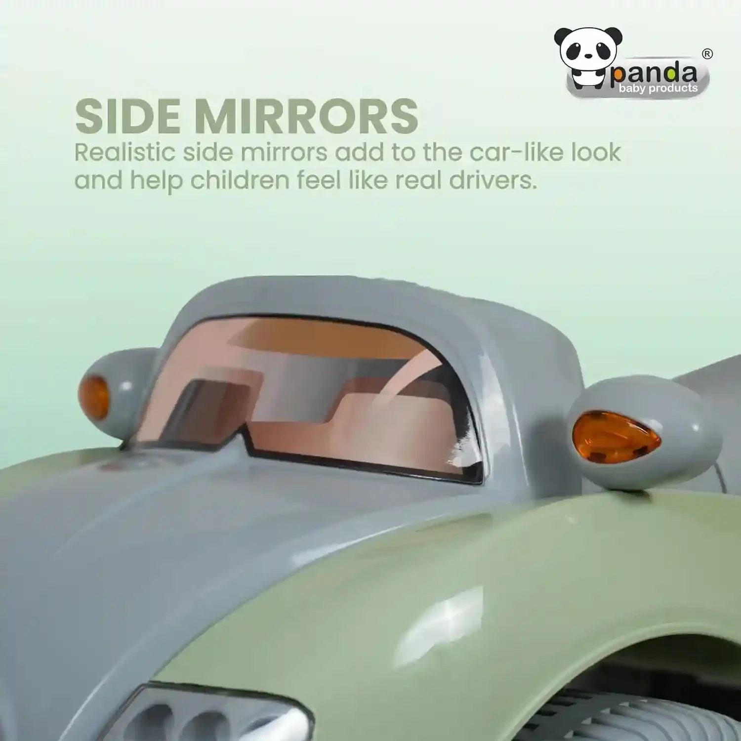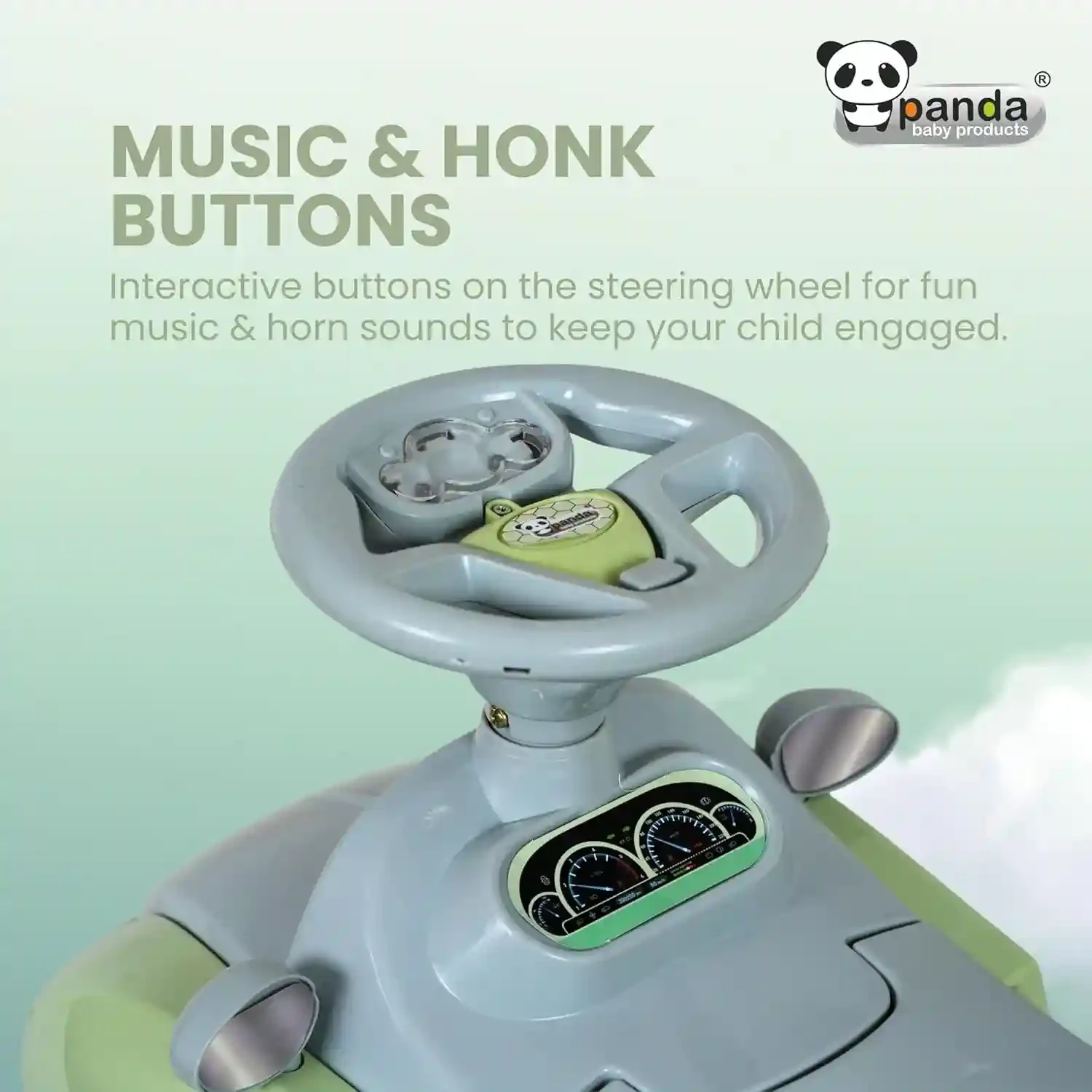 Attractive Features: Smooth steering wheel equipped with a musical horn featuring three sound settings, along with vibrant lights to keep kids entertained and attentive.