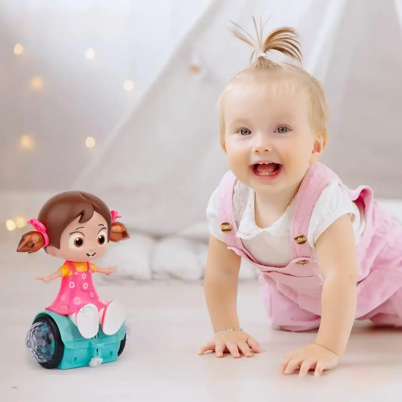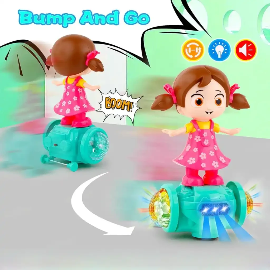 Dancing Girl Battery Operated Toy – 5D Lights & Music, Bump & Go Action, Battery-Operated Musical Doll for Kids
