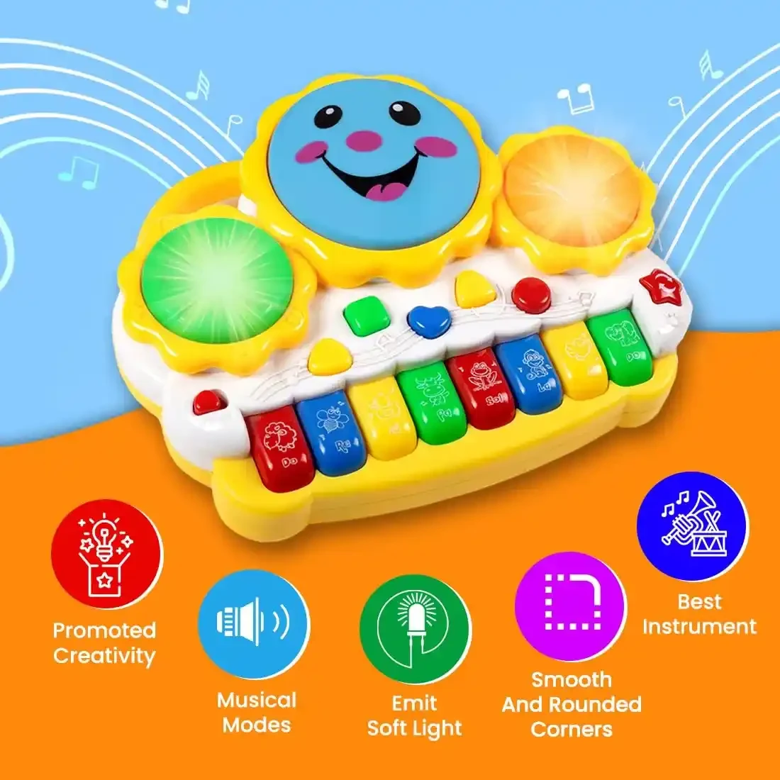 Drum-Keyboard Musical Toy with Flashing Lights | 2-in-1 Drum & Keyboard for Toddlers’ Music Play