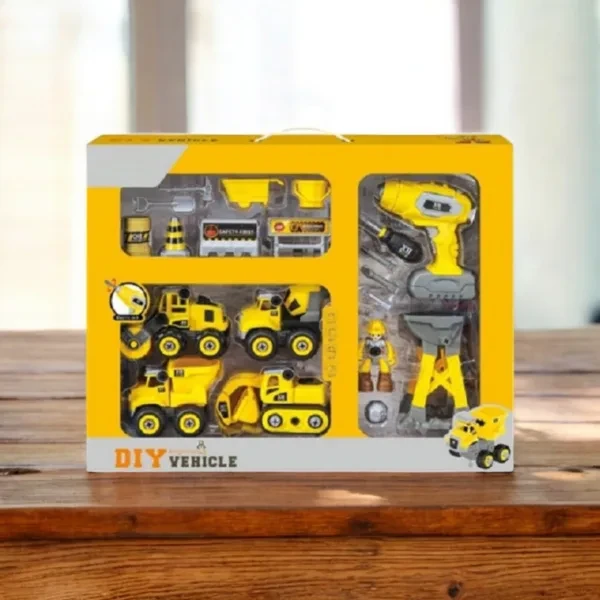 DIY Construction Vehicle Play Set with Automatic Drill – Build and Assemble Construction Trucks for Kids