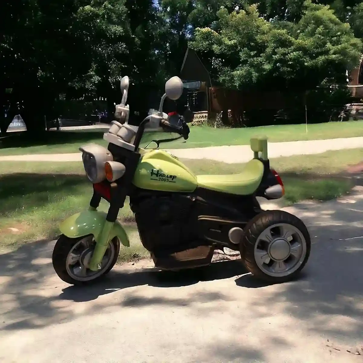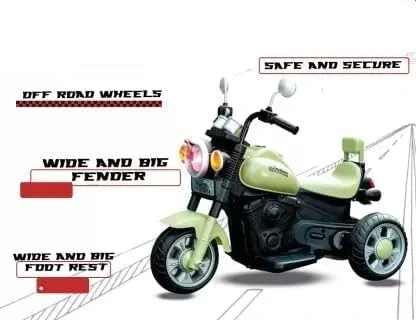 Harley Battery Operated Ride-On Bike for Kids – Green, LED Lights, Music, Foot Accelerator, Rechargeable, Ages 2-5 Years