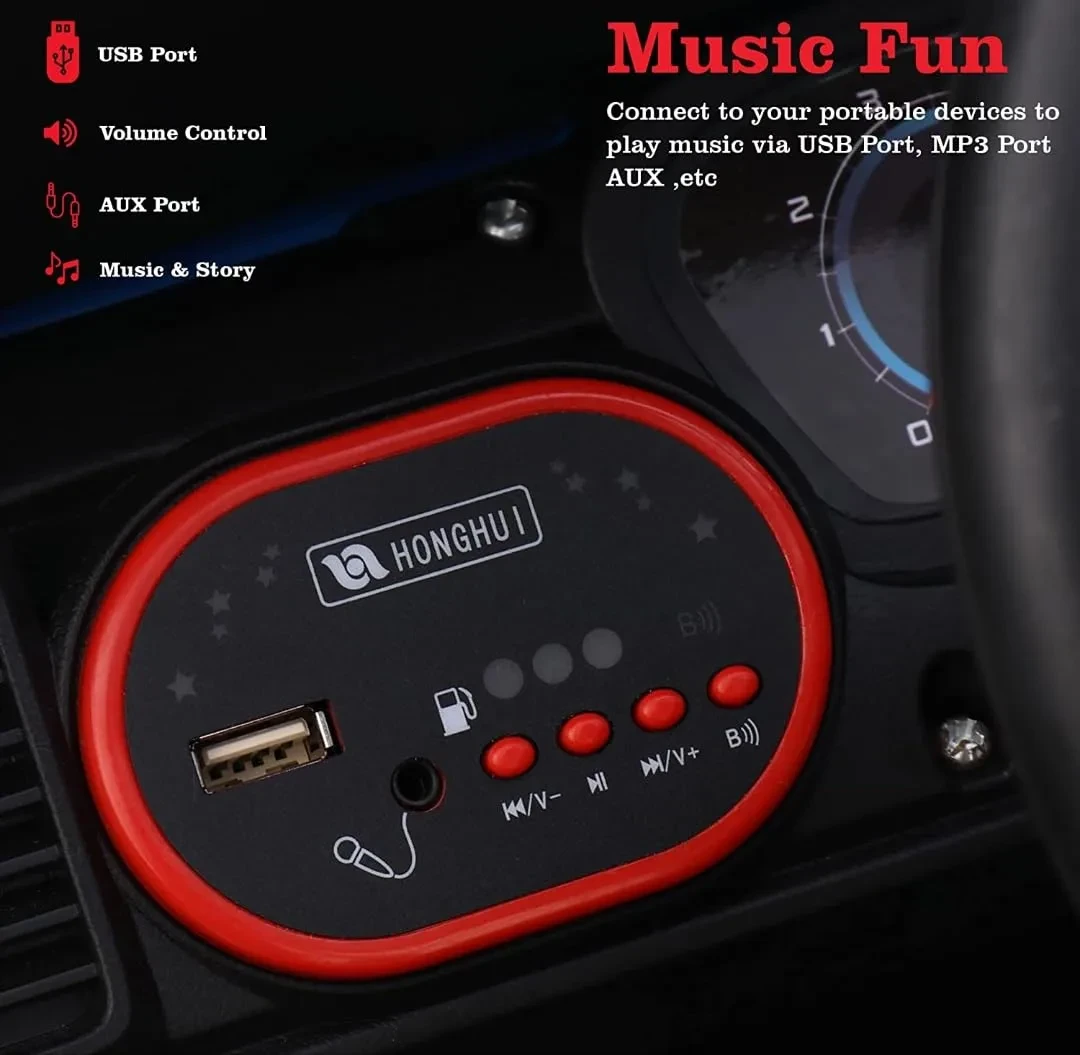 Realistic ride with horn, LED headlights, and music