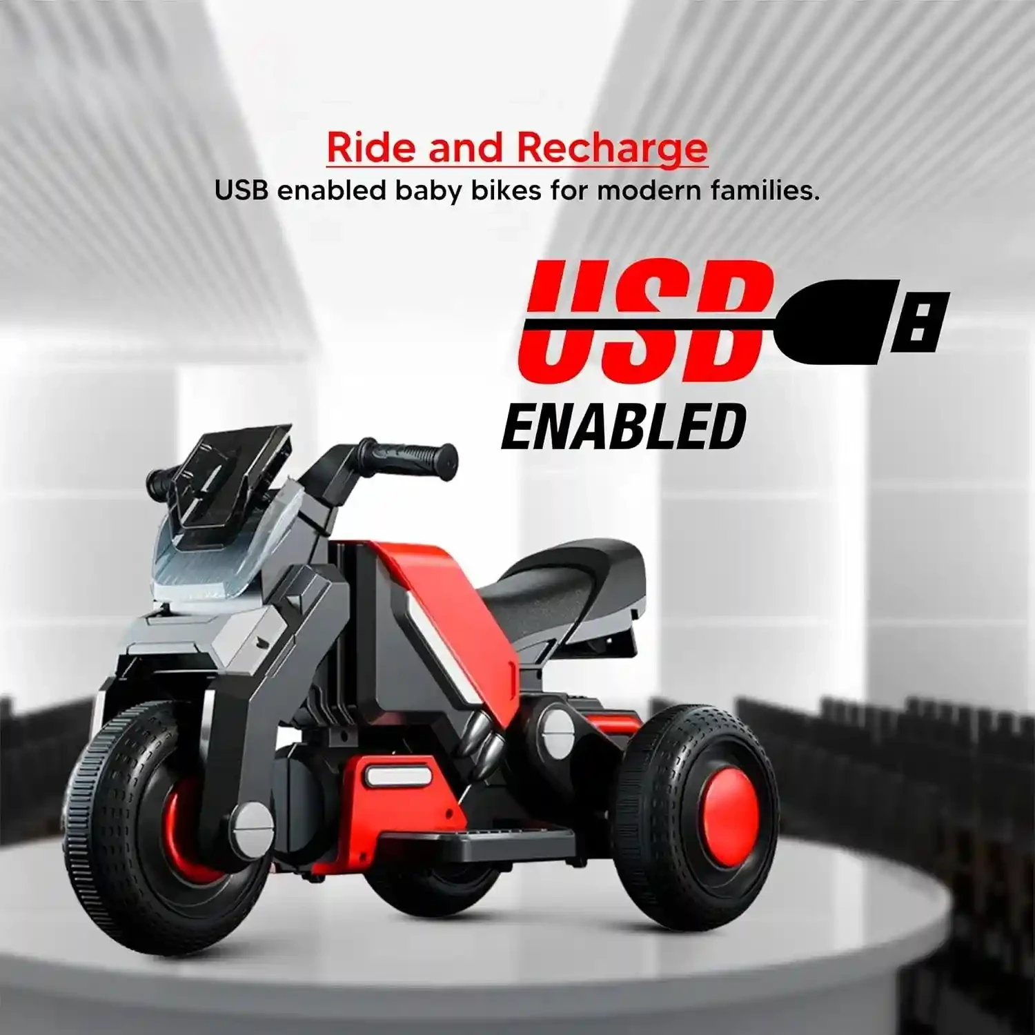 Prorider 6V Electric Kids Bike with Rechargeable 6.5 Ah Battery, Bluetooth Music Player, Front LED Light & Foot Accelerator | Ages 1-5 Years