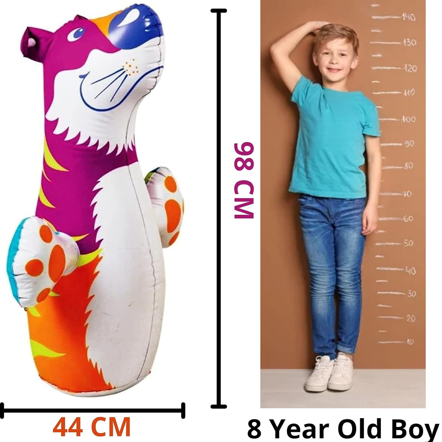 Intex Tiger “Hit Me” Bop Bag with Sand-Weighted Bottom | 98×44 cm Inflatable Punching Bag Toy for Kids (3+ Years)