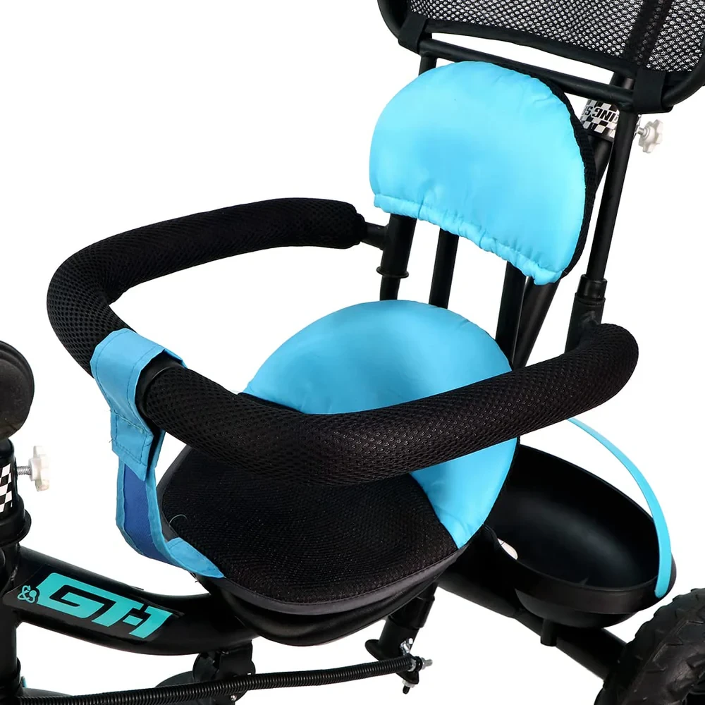 Luusa GT-500 Kids Tricycle with Adjustable Parental Control Handle, Safety Belt & Guard, Cushion Seat, Storage Basket, Age 1-5 Years