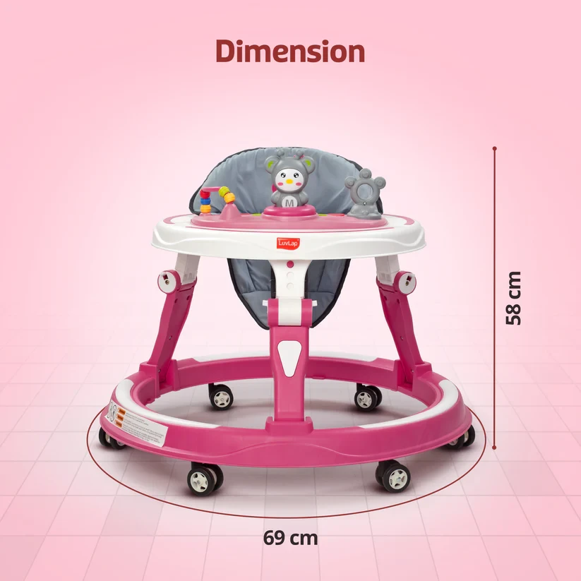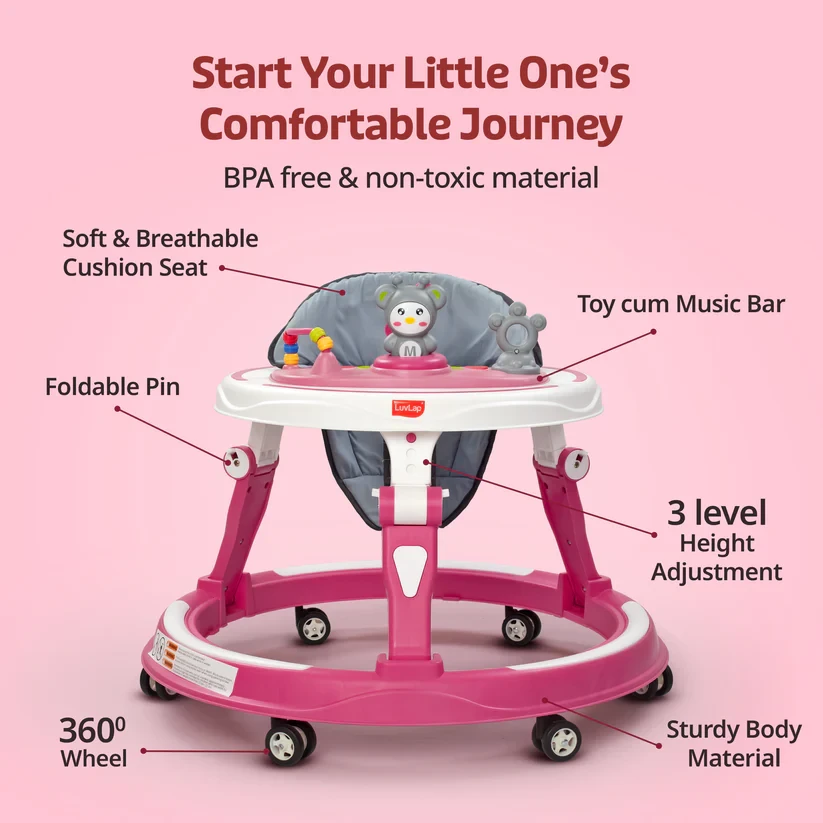 LuvLap 360 Joy Baby Walker with 3-Level Height Adjustment & Switchable Musical Toy Tray – Advanced Activity Walker for Babies 9+ Months