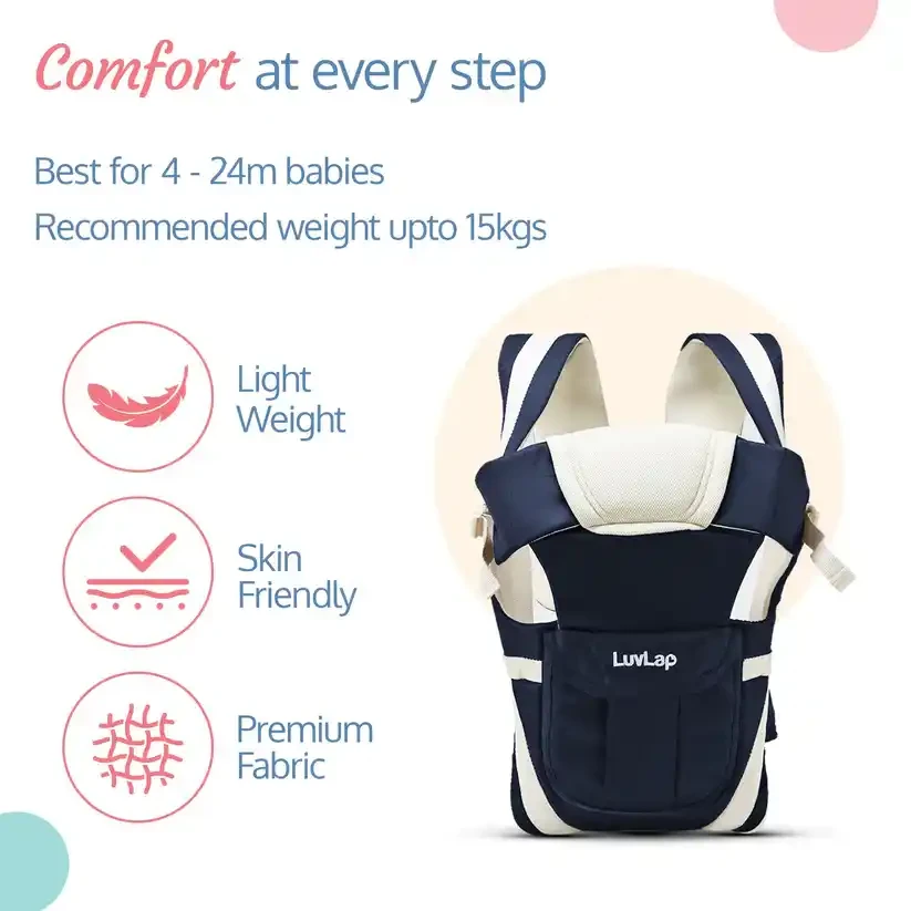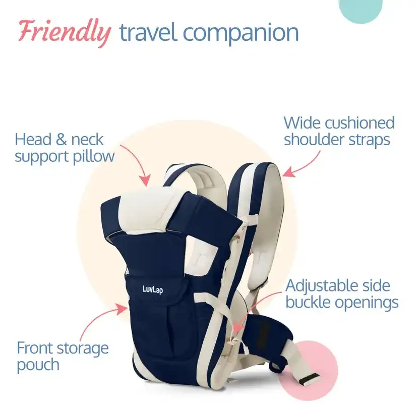 LuvLap Elegant Baby Carrier in Dark Blue – Comfortable Ergonomic Baby Carrier with Adjustable Straps for Infants and Toddlers