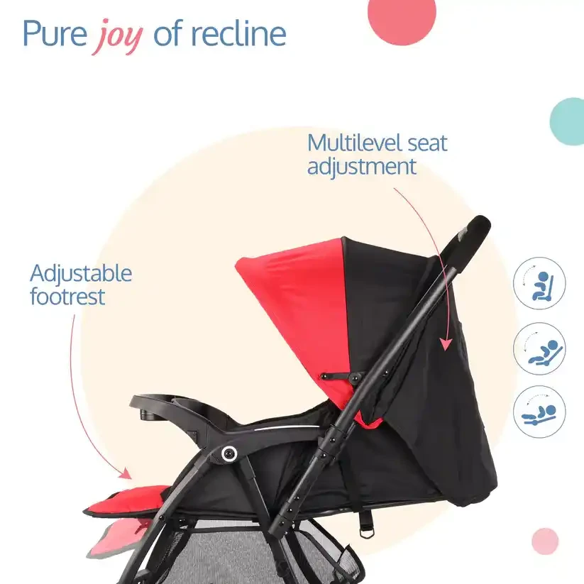 Maximum Comfort: Features a multi-position seat recline, wide and spacious cushioned seat, adjustable footrest, and extendable canopy to ensure your baby’s comfort in all conditions.