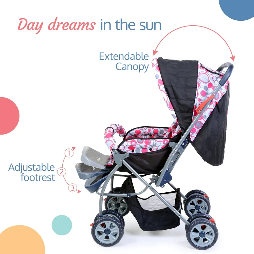 LuvLap Starshine Baby Stroller Pram for Newborn to 3 Years – Lightweight, Adjustable Backrest, 360° Swivel Wheels & Reversible Handlebar