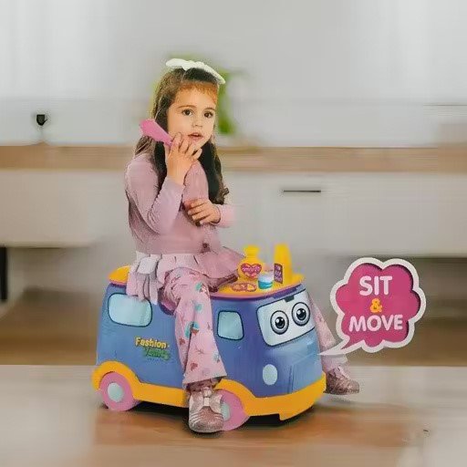 2 IN 1 FASHION VANITY VEHICLE: Combines a stylish rolling vehicle with a functional vanity playset for dual play modes.