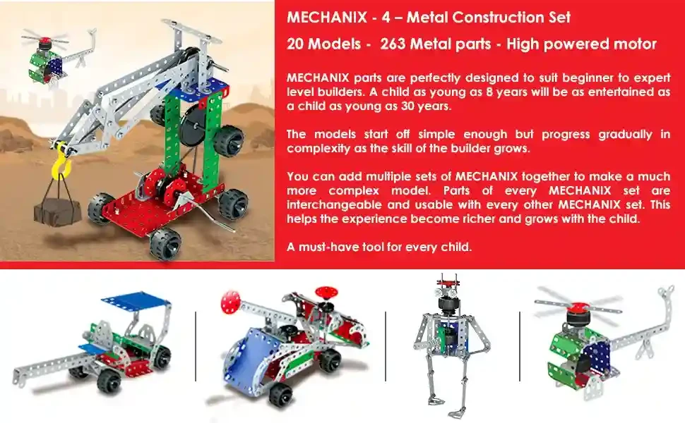 Mechanix-4 Metal Construction Set – 263-Piece DIY STEM Building Kit for Ages 7+