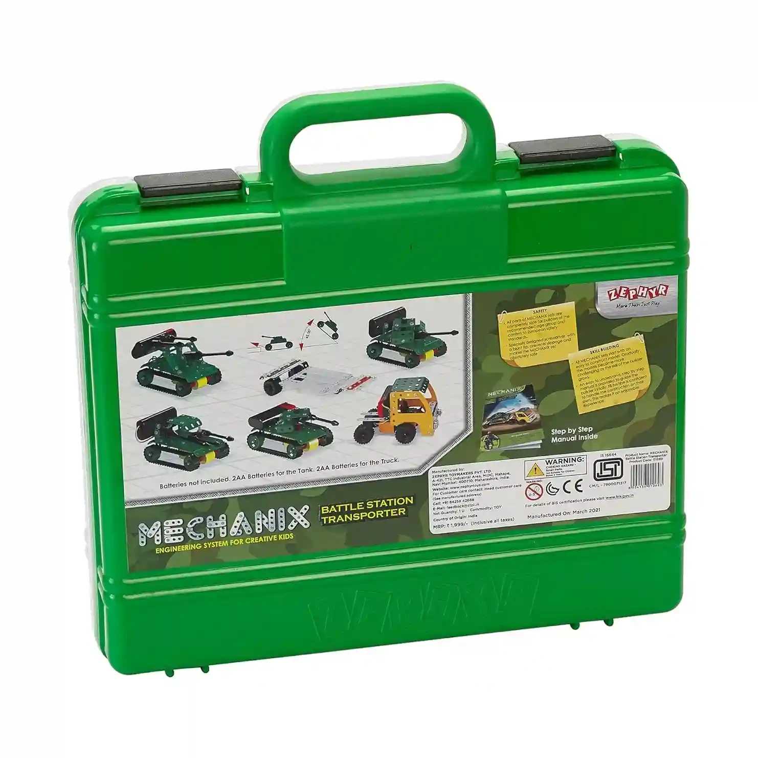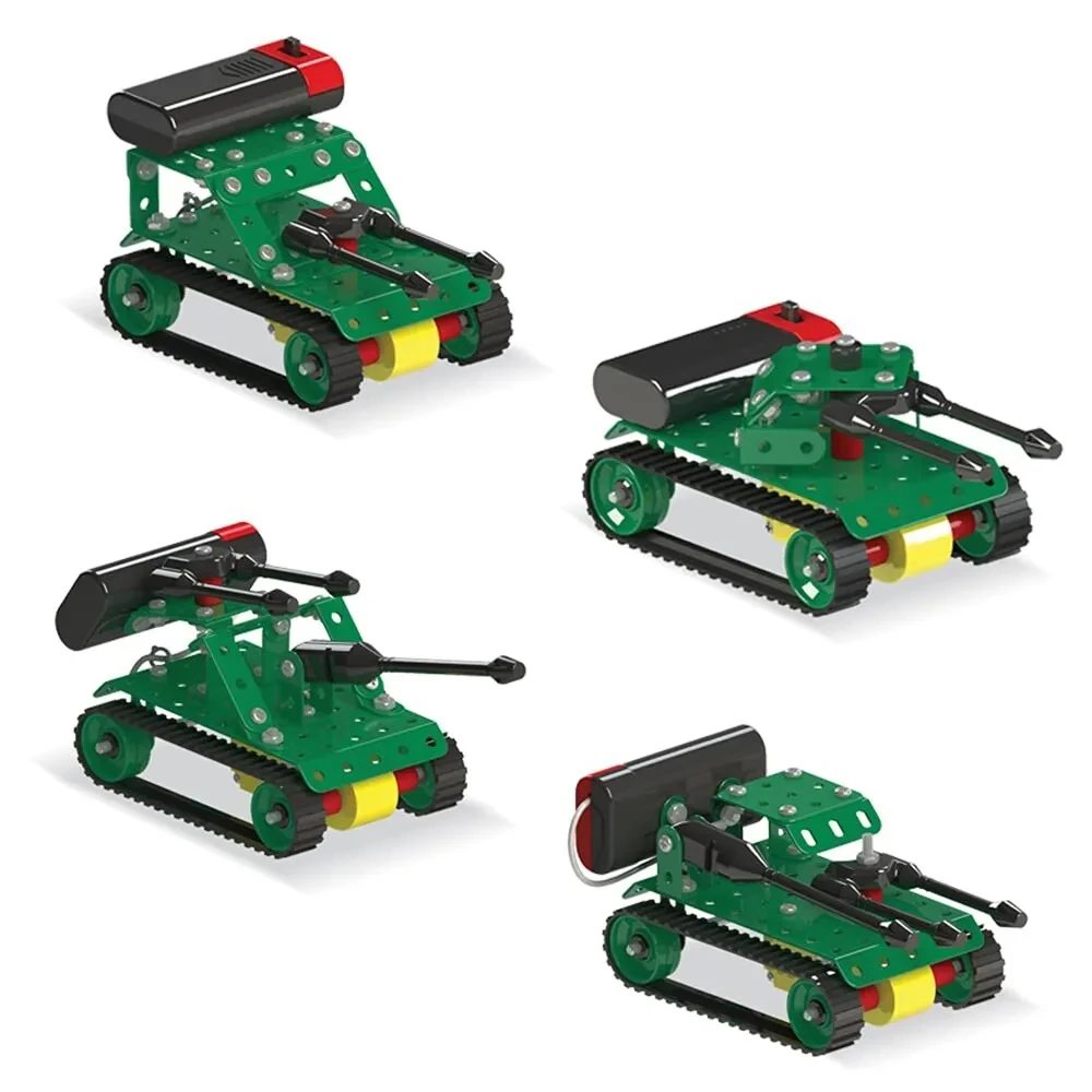 DIY Engineering Kit: 249 high-quality steel pieces to build 28 versatile battle station models including a motorized transporter truck.