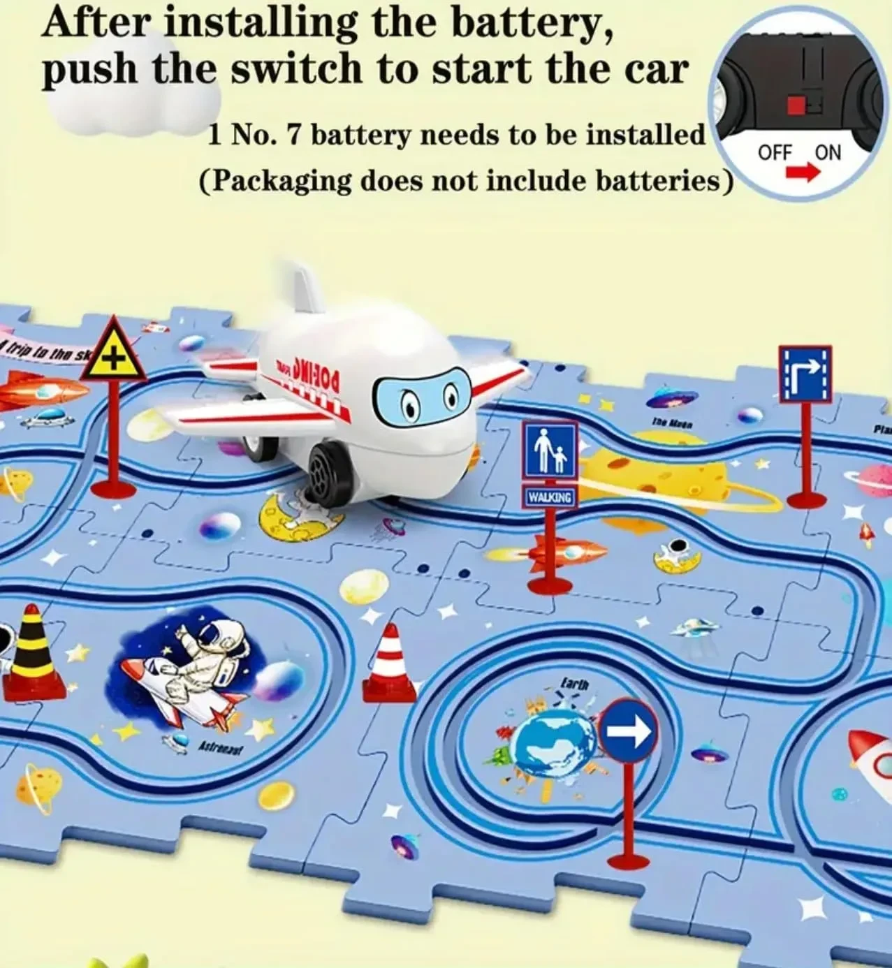 Railcar Puzzle Track Set – Electric Puzzle Track with Vehicle & Road Signs for Kids