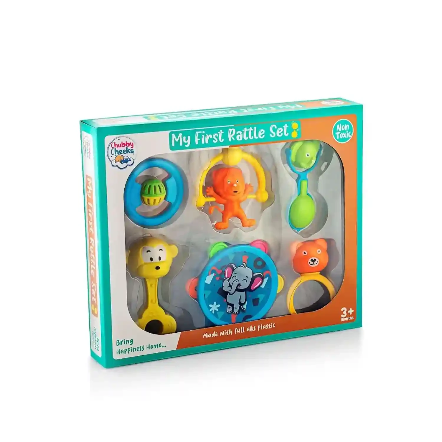 Sunny Chubby Cheeks My First Rattle Set – Pack of 6 Multicolor Sensory Toys for Infants 3M+ | Non-Toxic ABS Plastic, Easy Grip