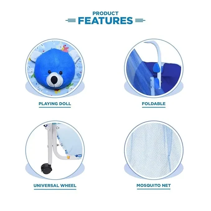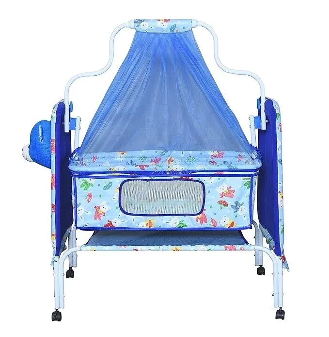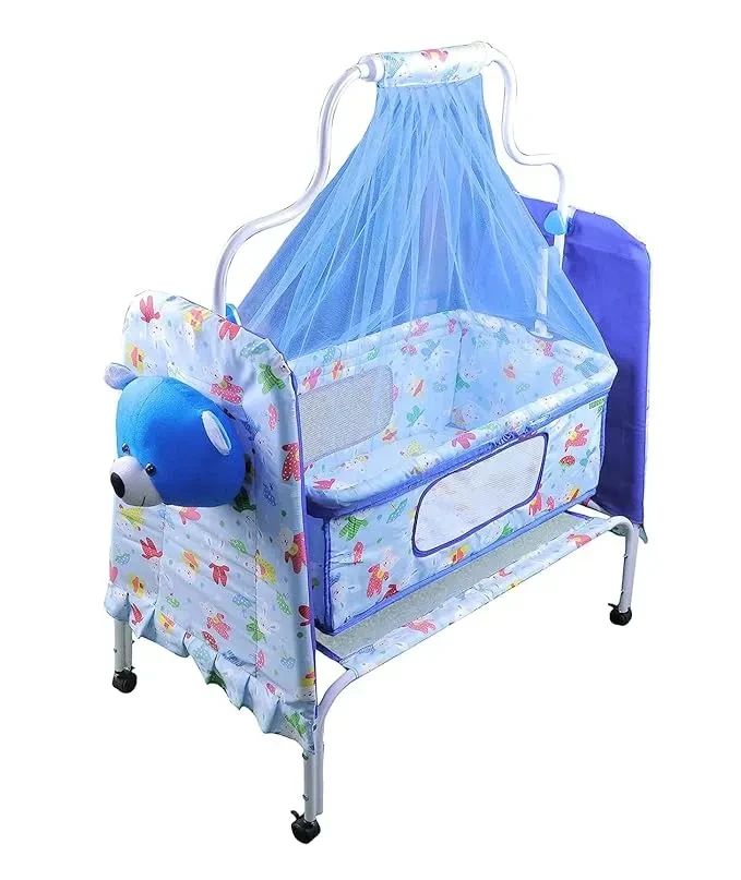 Trending Teddy Baby Cradle with Swing, Storage Basket, Mosquito Net, Four Wheels & Brake and Foldable | Comfortable Multi-Use Baby Cradle for Newborns