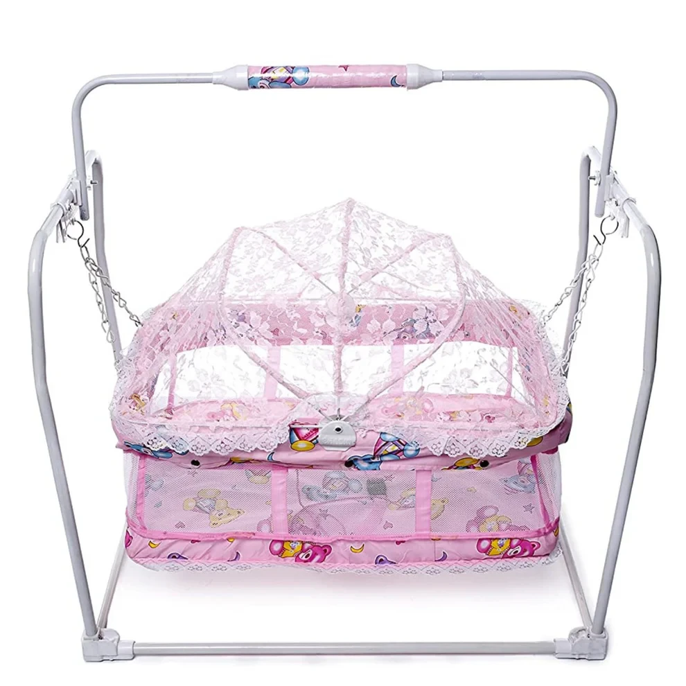 Bhasin Mobile Swing Baby Cradle – Foldable Metal Hanging Cradle with Mattress & Mosquito Net