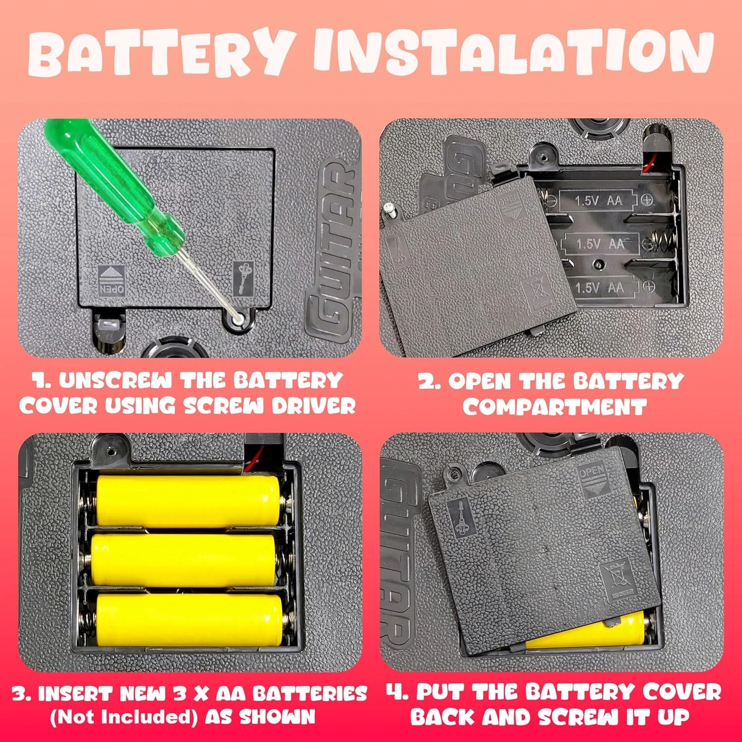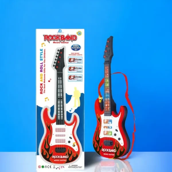 Rockband Musical Guitar with Lights & Pre-Stored Tunes – Battery-Operated Kids Guitar Toy