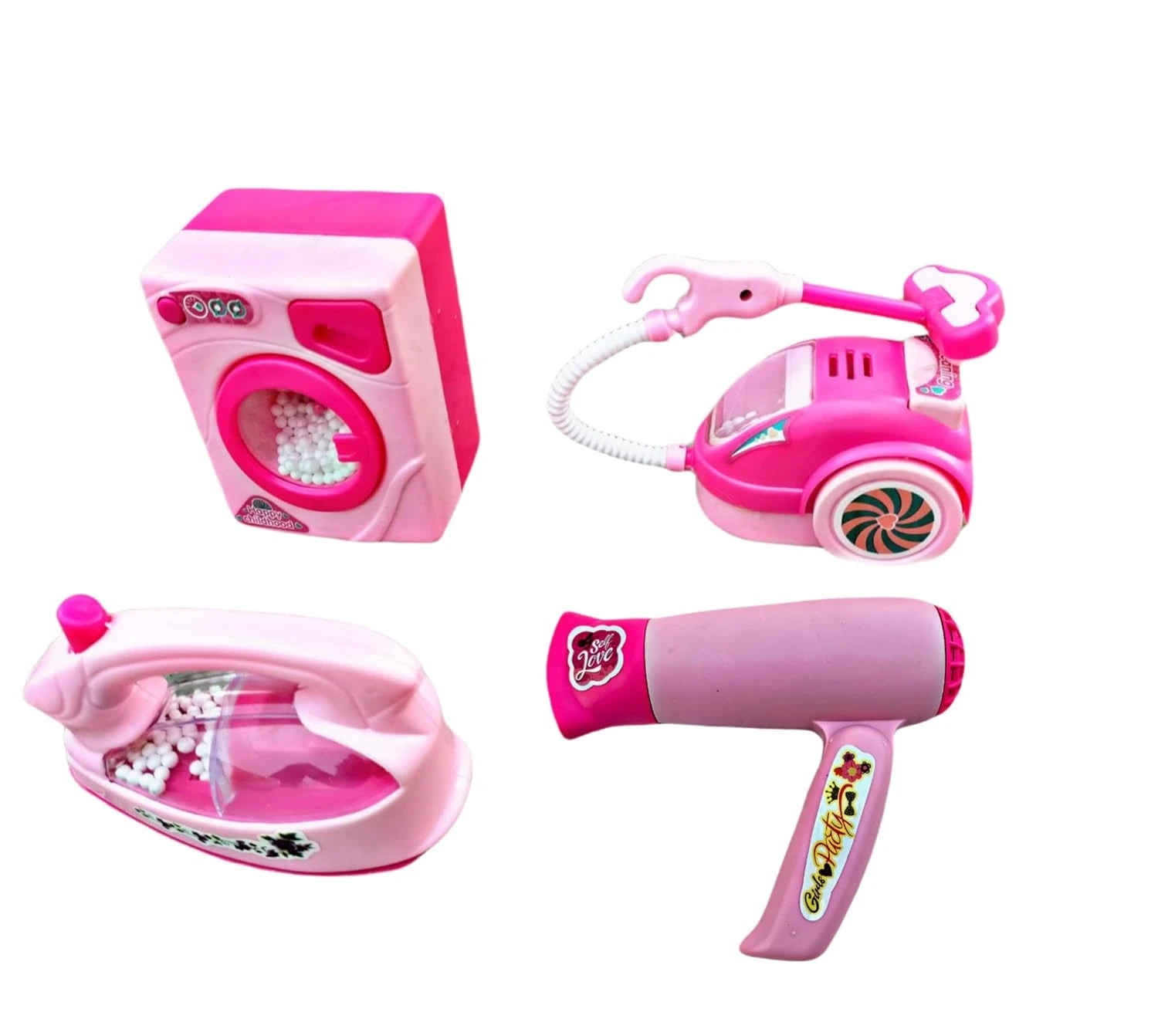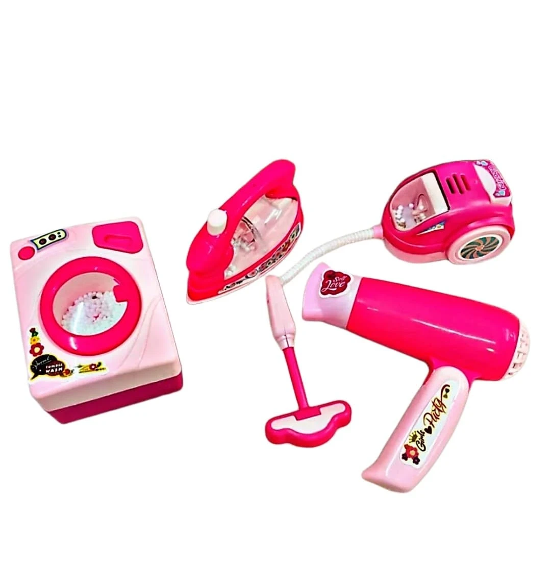 4pc Kids Home Appliances Set – Iron Box, Washing Machine & Vacuum Cleaner (Kids 3+)