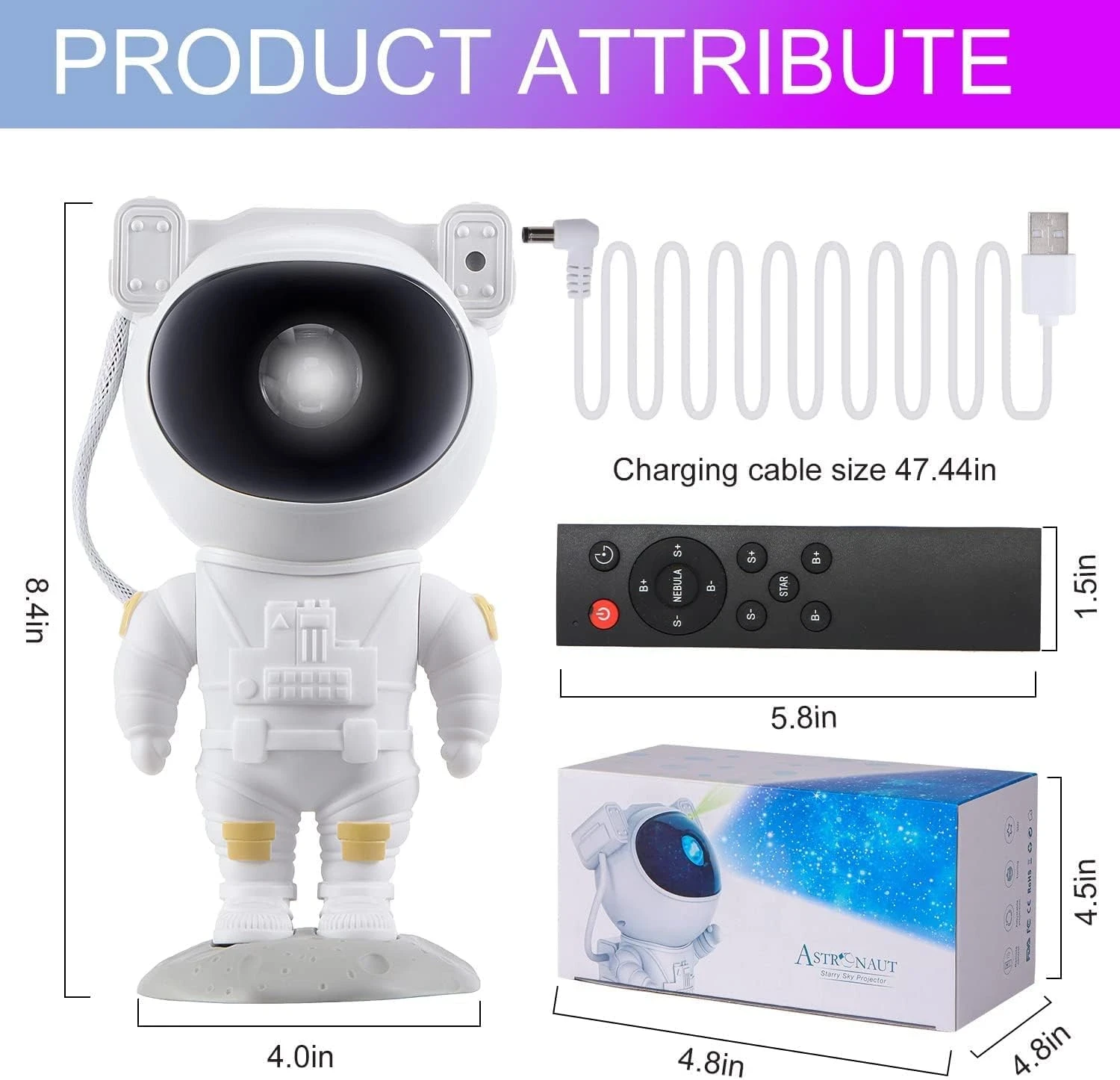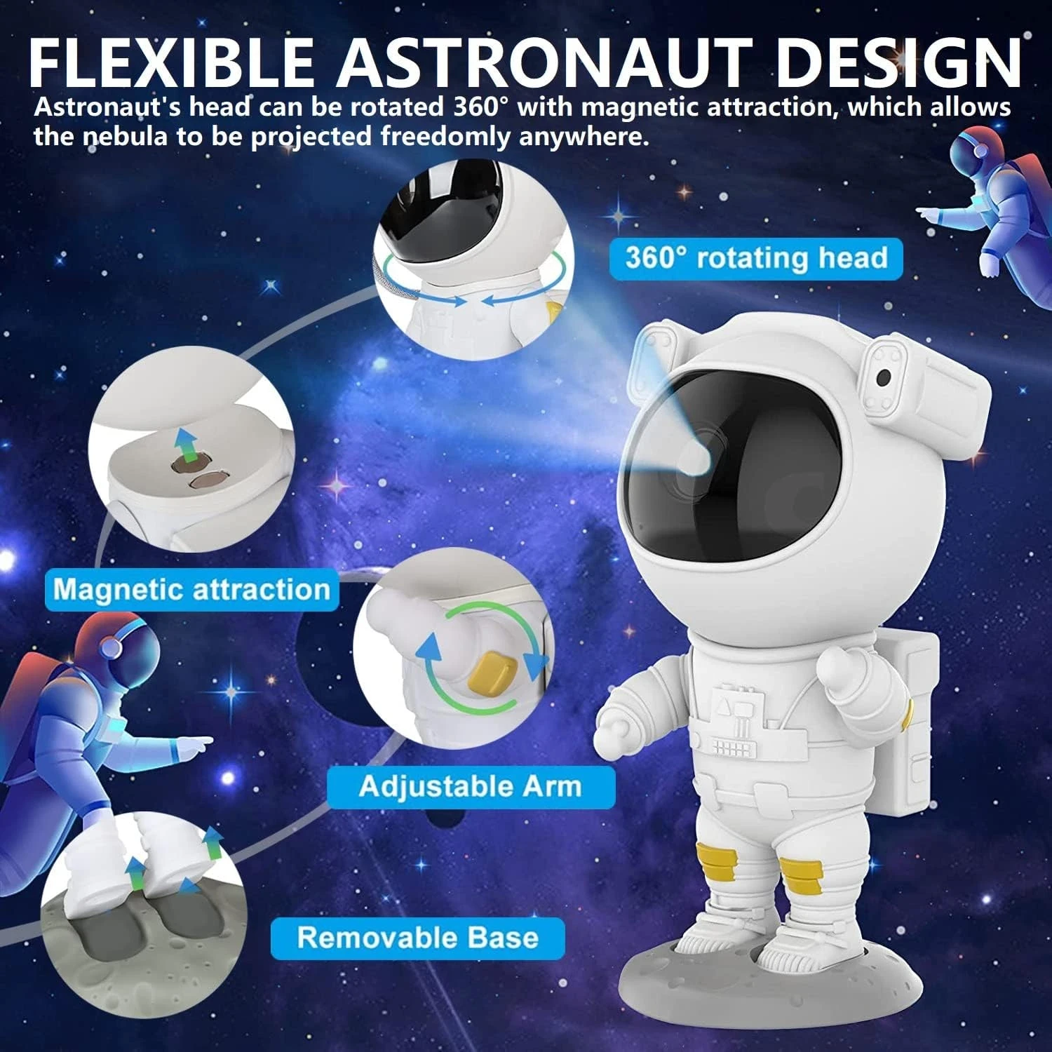 360° Adjustable Astronaut Head: The astronaut’s head can rotate freely, allowing you to direct the nebula and stars to any angle in your room for a personalized projection experience.