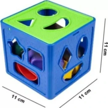 Educational Shape Sorter Cube: Features 18 colorful, geometric plastic blocks and a durable sorting cube with matching cut-outs on all sides.