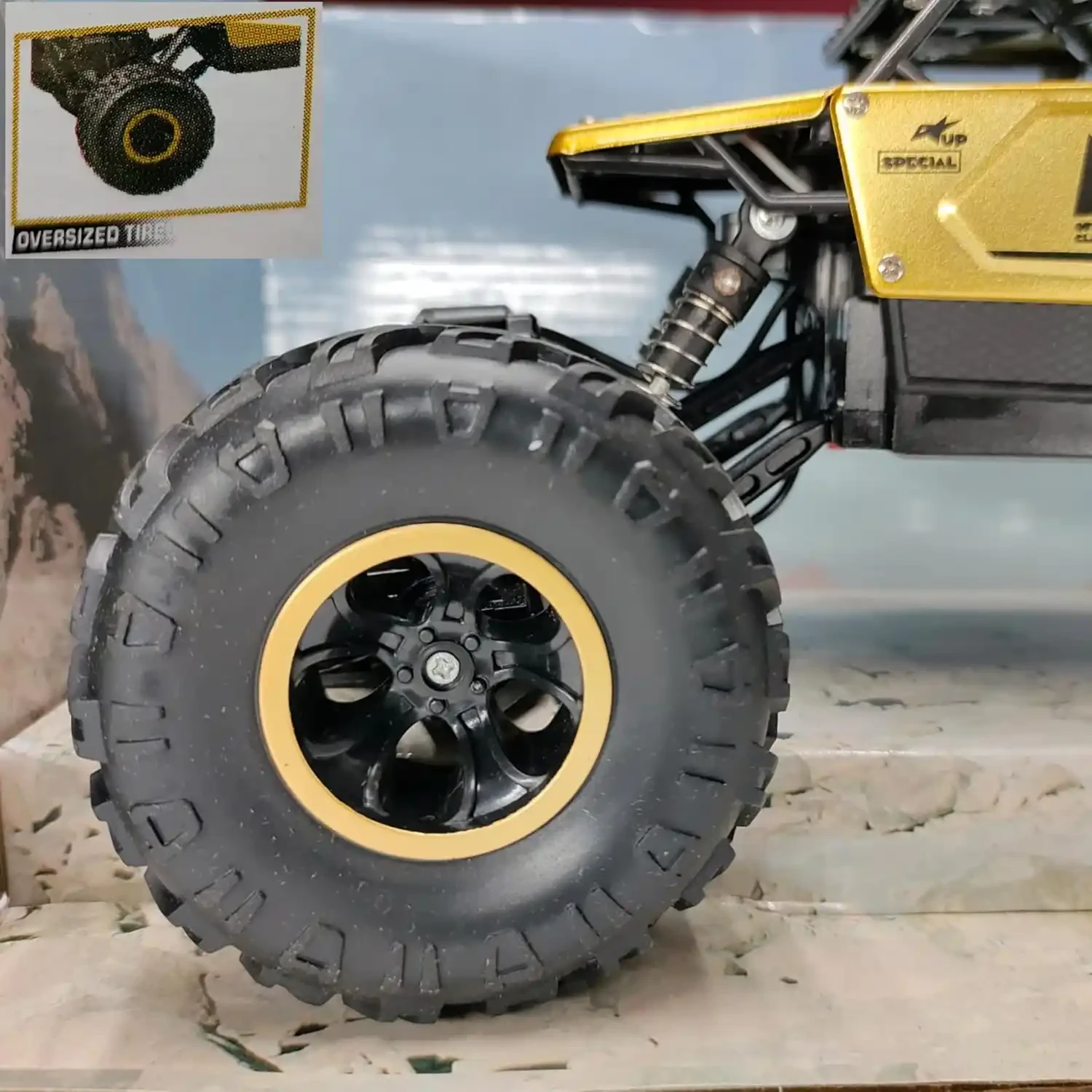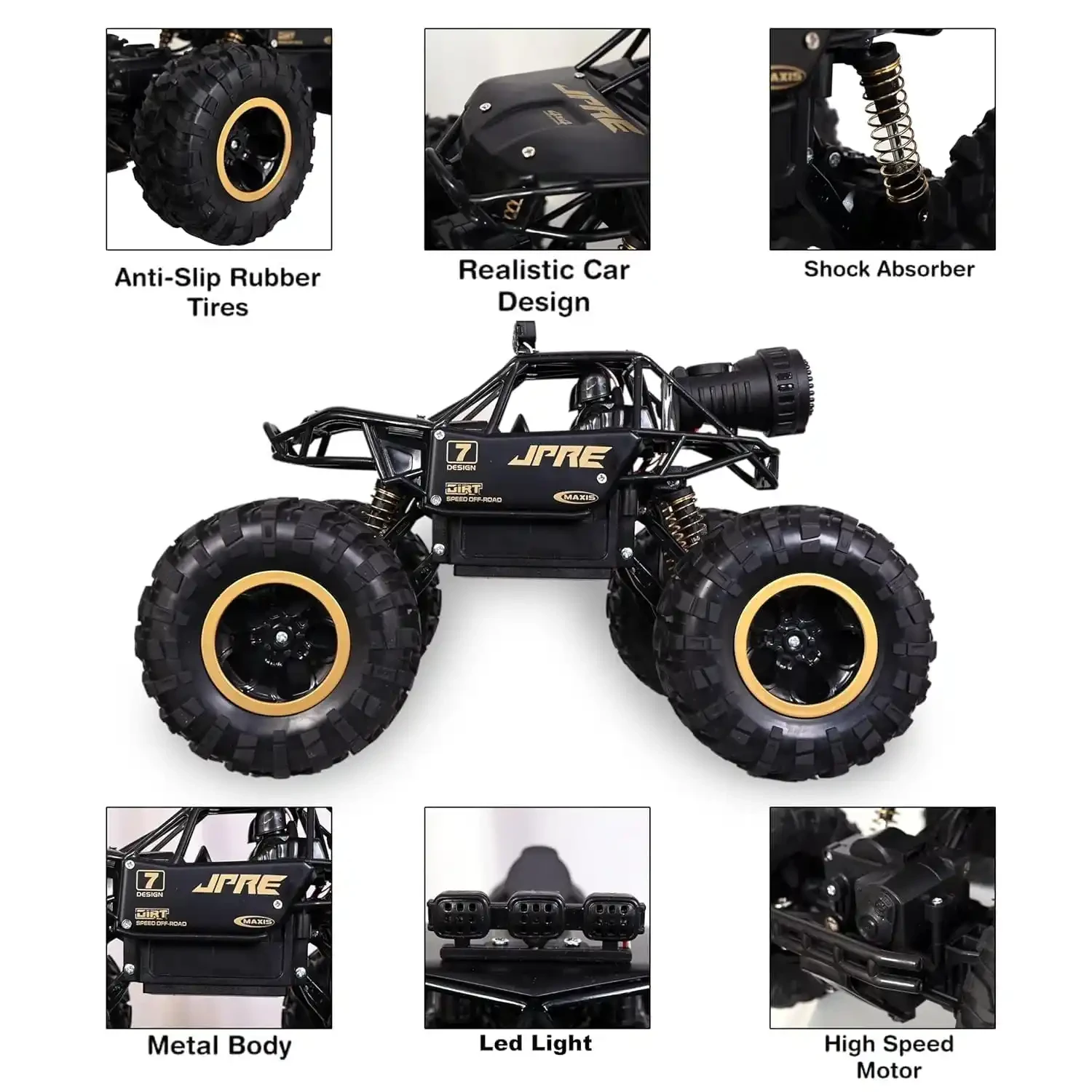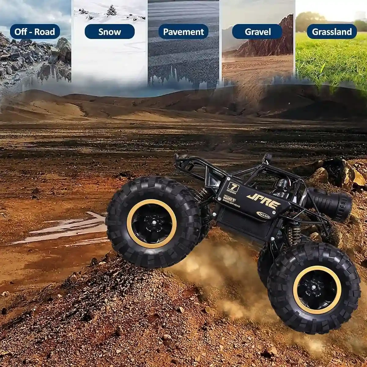 BIG SIZE ROCK CRAWLER DESIGN: Oversized 1:12 scale body with heavy-duty suspension, built for powerful off-road action. Climbs rocks, rough roads, and almost any terrain effortlessly.