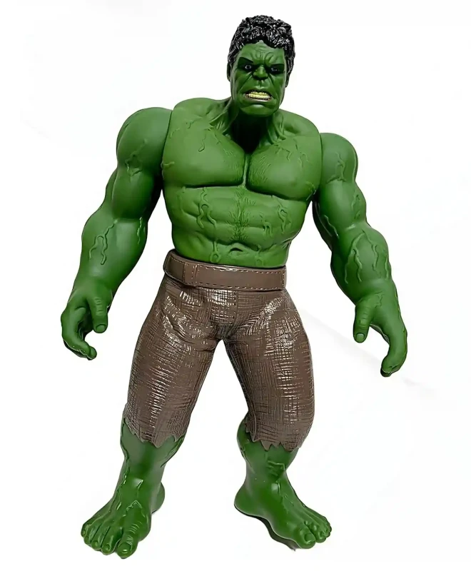 Powerful Design: Iconic green Hulk character with muscular physique inspired by Avengers comics for thrilling action play and collection appeal.