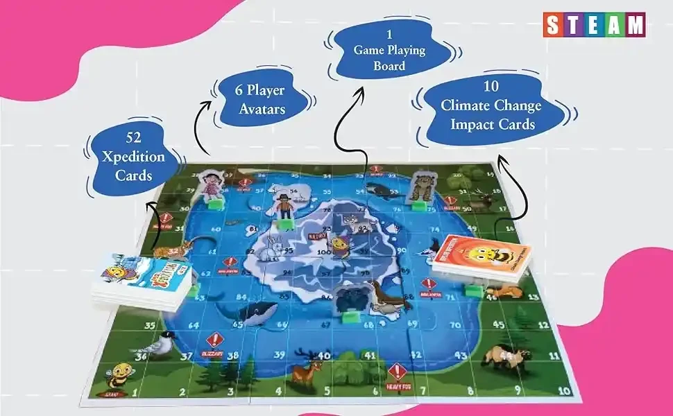 ? Unique Arctic Adventure Theme – Set in the fascinating icy landscapes of the Arctic, this board game takes children on an expedition filled with challenges, strategy, and eco-friendly missions. The theme excites kids as they explore glaciers, snow paths, and frozen mysteries.