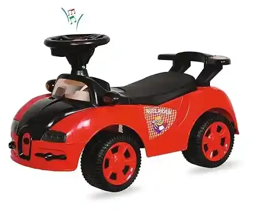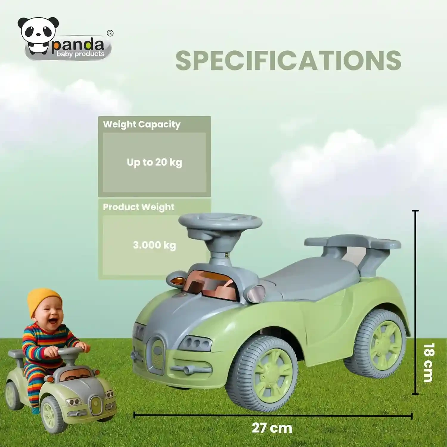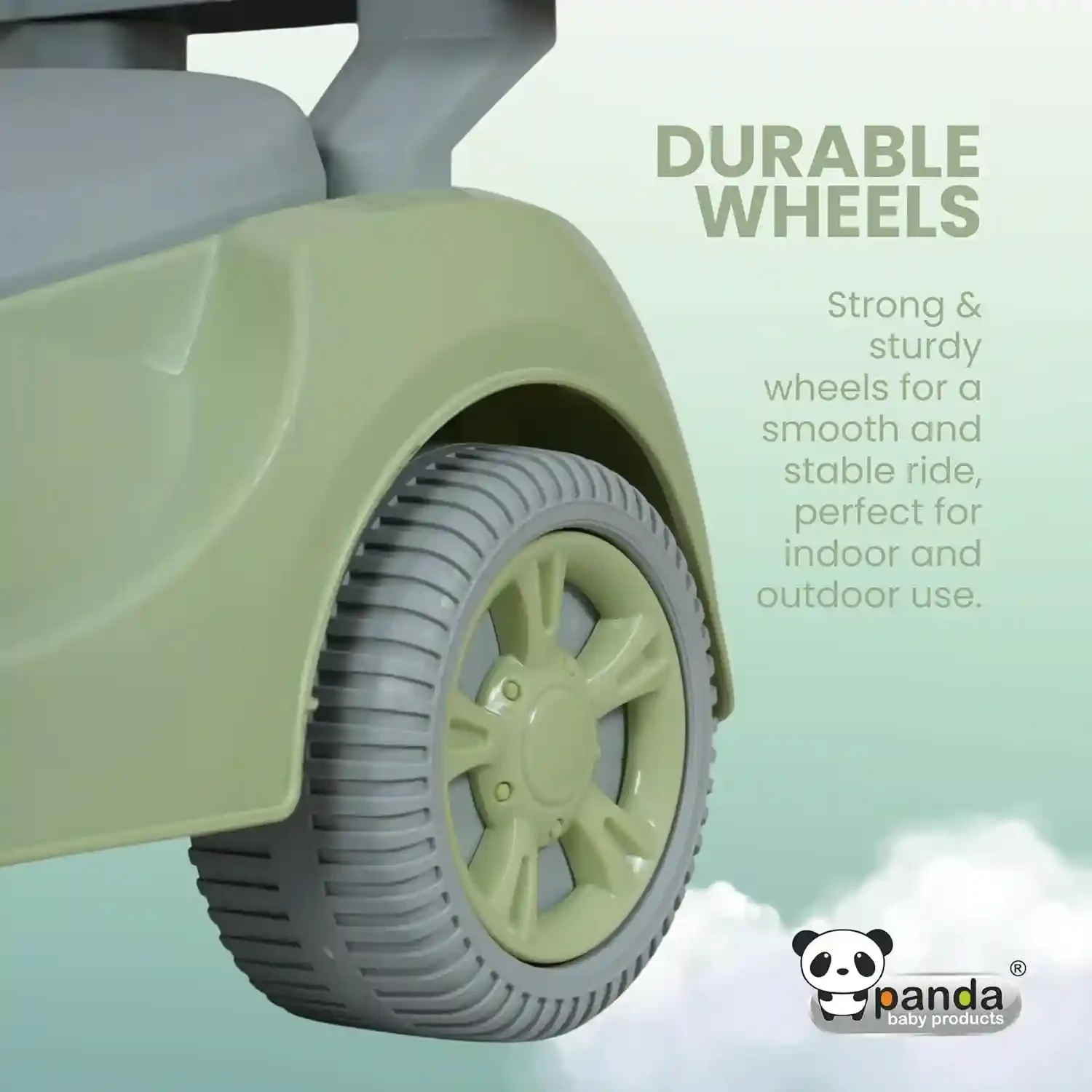 Attractive Features: Smooth steering wheel equipped with a musical horn featuring three sound settings, along with vibrant lights to keep kids entertained and attentive.