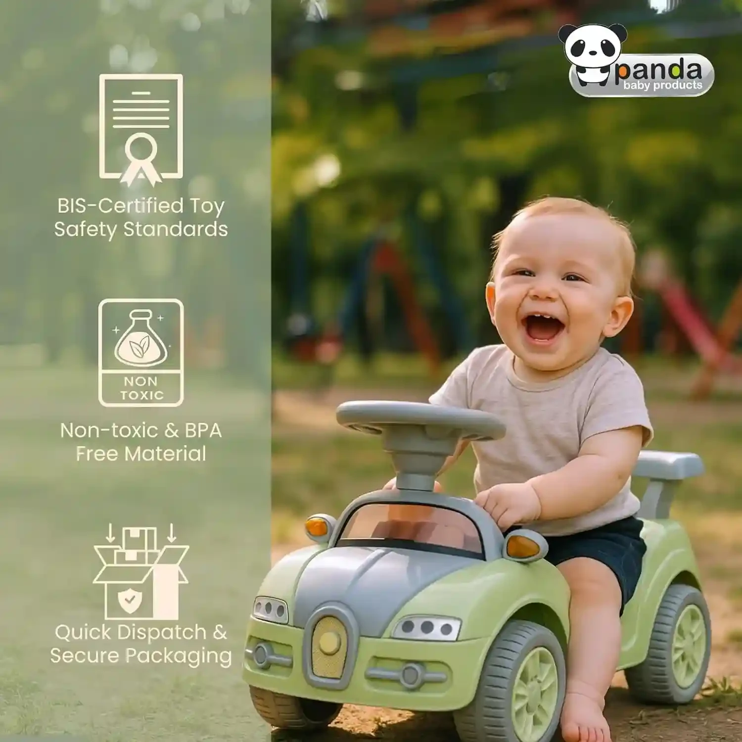 Buzz Rider Car Ride-On with Music, Horn & Parental Push Handle – Green | For Kids 1-3 Years, Up to 20 Kg