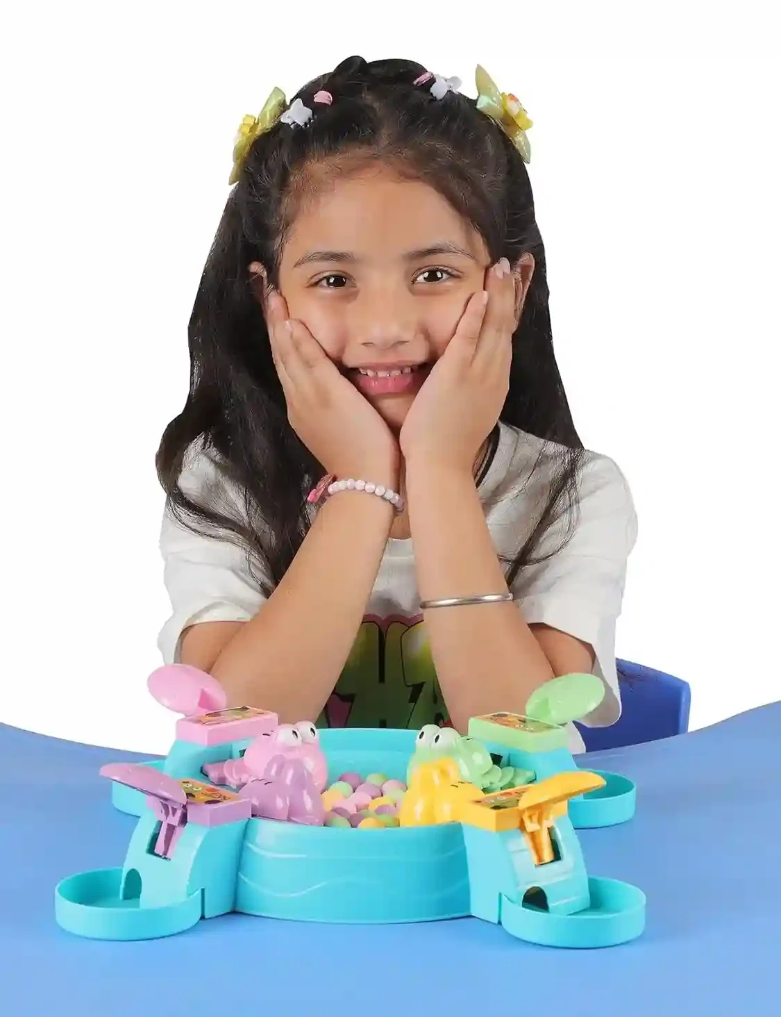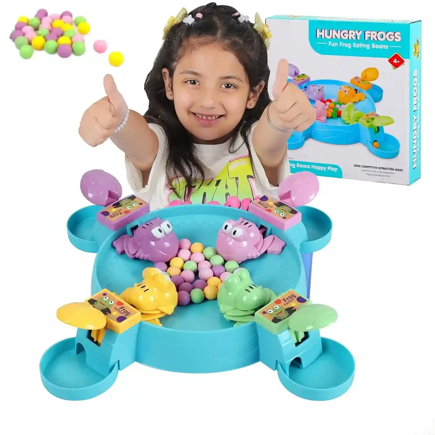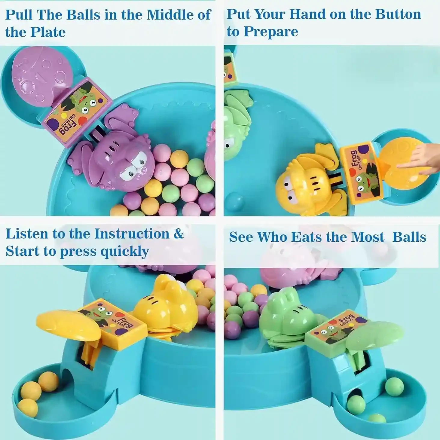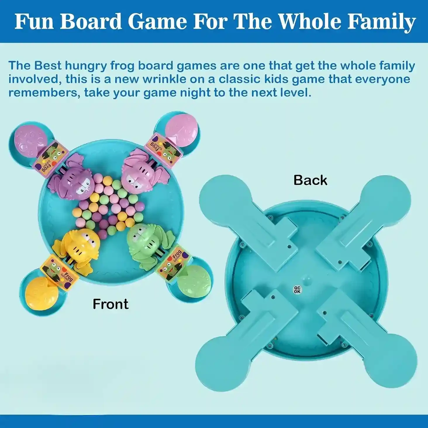 Colorful Hungry Frog Board Game – 4-Player Catch the Ball Feeding Game with Marbles for Kids