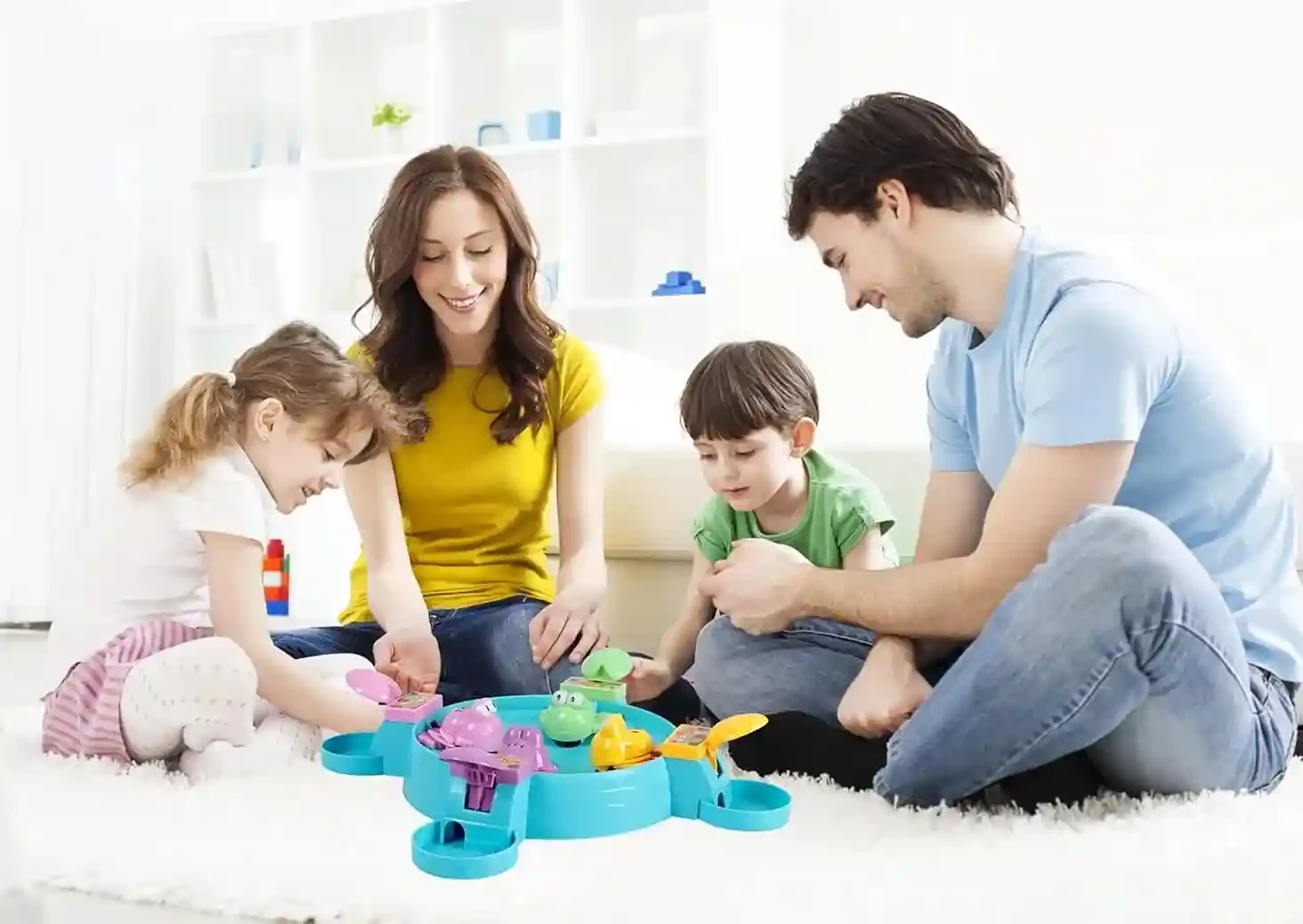 Interactive 4-Player Game: Four colorful frog characters and a set of marbles provide exciting multiplayer fun, promoting social interaction and family bonding.