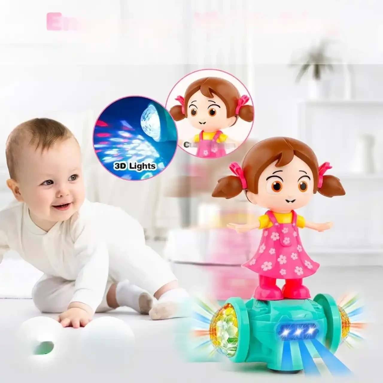 Dancing Girl Battery Operated Toy – 5D Lights & Music, Bump & Go Action, Battery-Operated Musical Doll for Kids