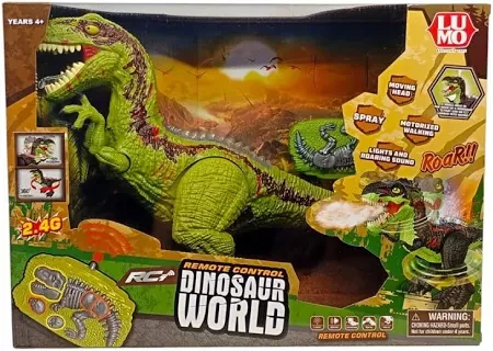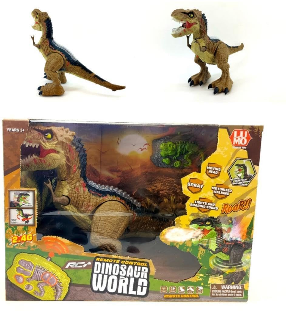 Dinosaur World – Remote-Control Walking Dino with Smoke Spray & LED Lights