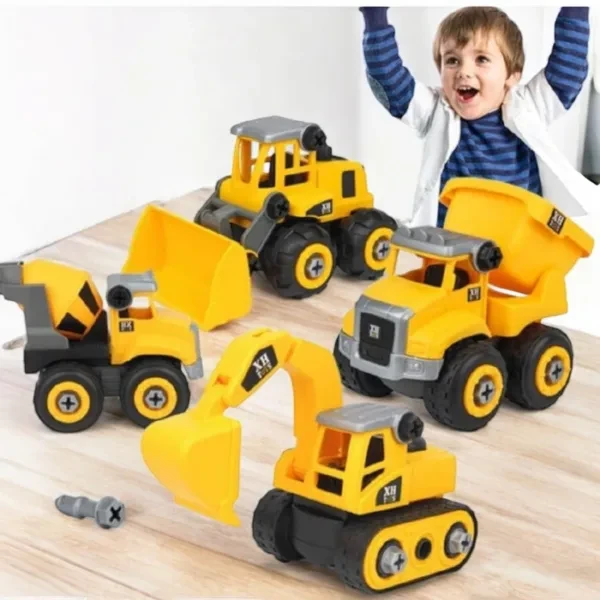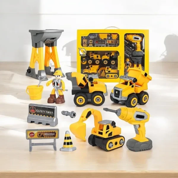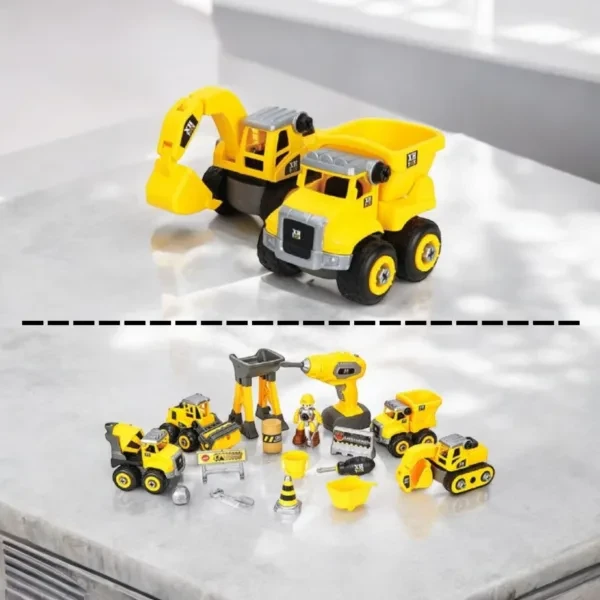 DIY Construction Vehicle Play Set with Automatic Drill – Build and Assemble Construction Trucks for Kids