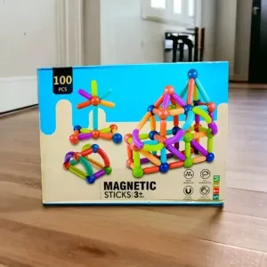 Versatile Magnetic Building Kit: Features 100 connectable rods and balls for building geometric shapes, towers, spheres, and more. Perfect for educational fun.