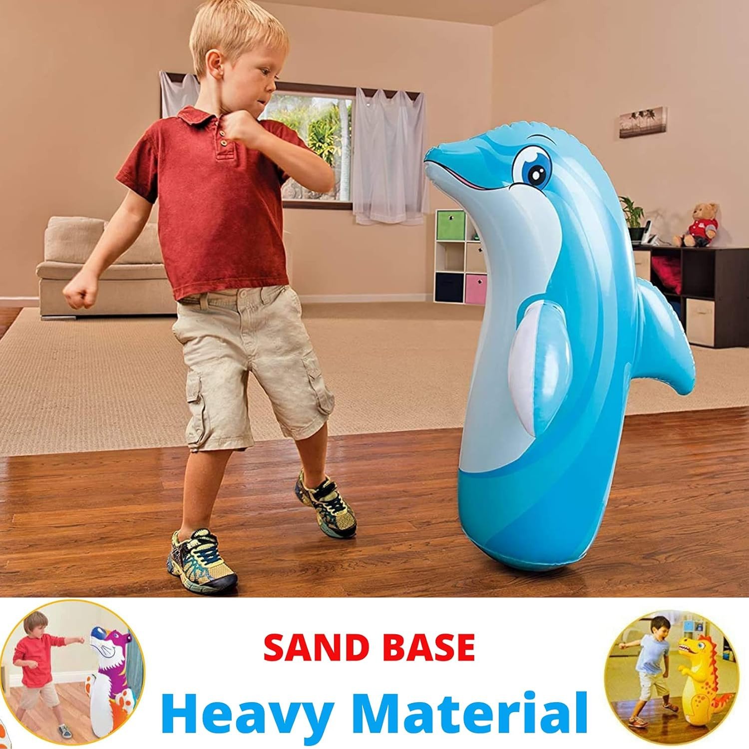 Intex Dolphin “Hit Me” Bop Bag with Sand-Weighted Bottom | 98×44 cm Inflatable Punching Bag Toy for Kids