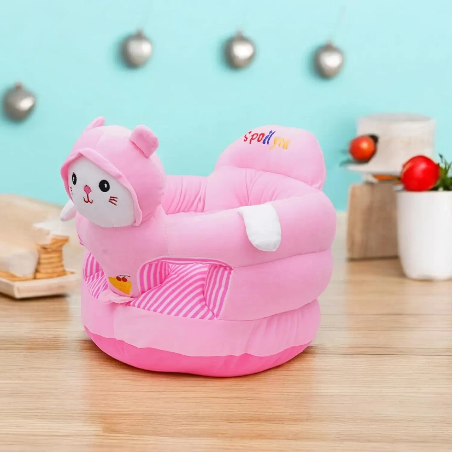 Kitty Plush Baby Seater Sofa – Soft Cotton Support Chair for Babies (Pink)