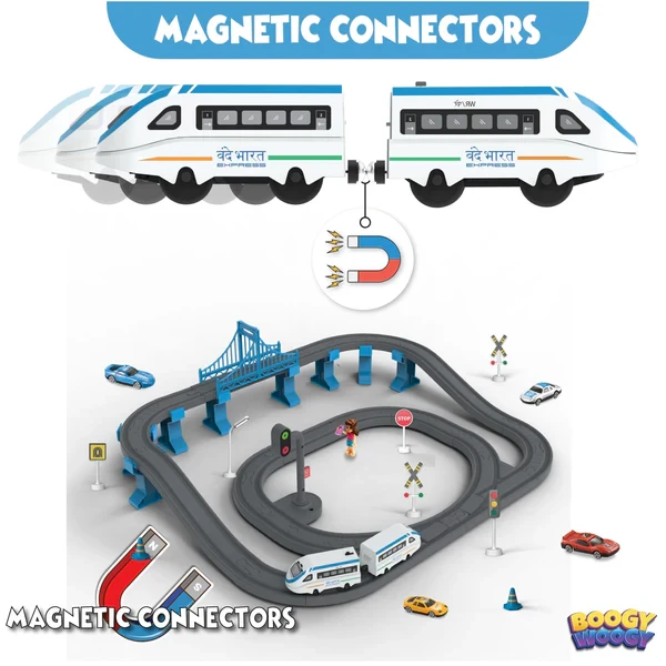 BOOGYWOOGY Bharat Express 77-Piece Magnetic Train Set – TYPE-C Rechargeable Engine with Tracks, Lights & Sounds for Kids 3+ Years