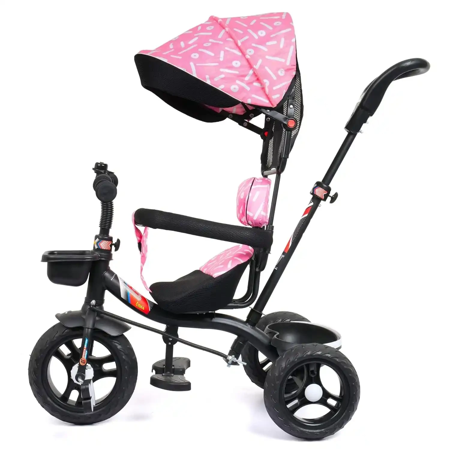 Luusa GT-500 Kids Tricycle with Adjustable Parental Control Handle, Safety Belt & Guard, Cushion Seat, Storage Basket, Age 1-5 Years