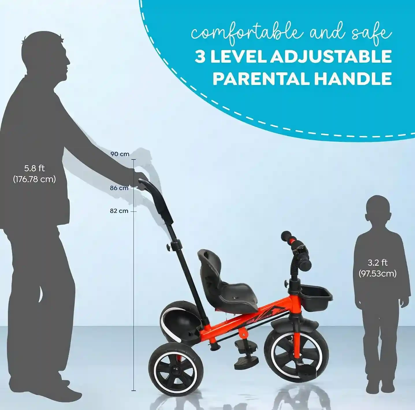 Parental Control Handle: Enables parents and elder siblings alike to steer and push the tricycle, providing additional safety and control on outdoor adventures.