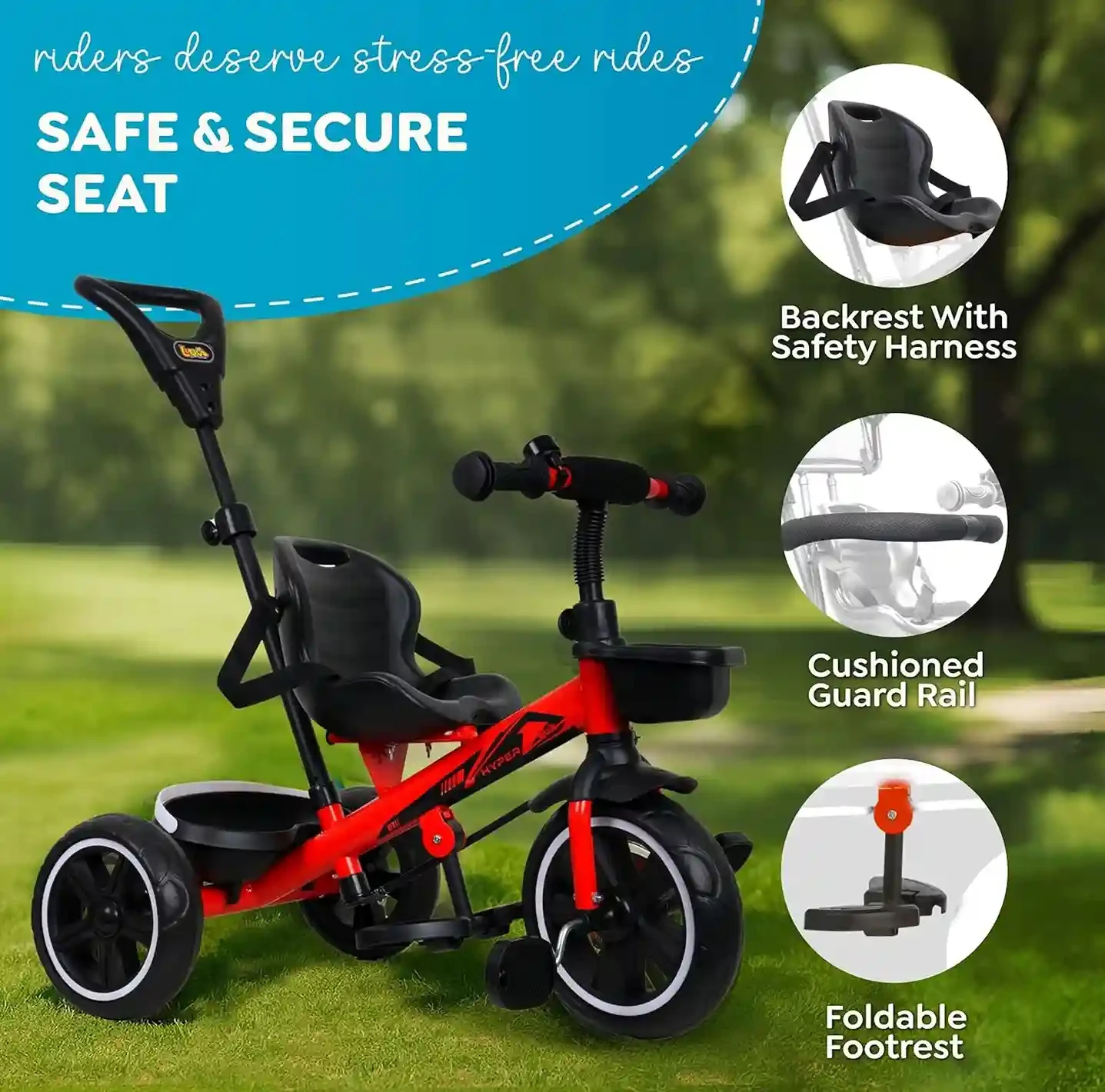 Luusa RX-500 Plug N Play Kids Tricycle with Parental Control, Cushion Seat & Seat Belt – For Boys & Girls 12-48 Months