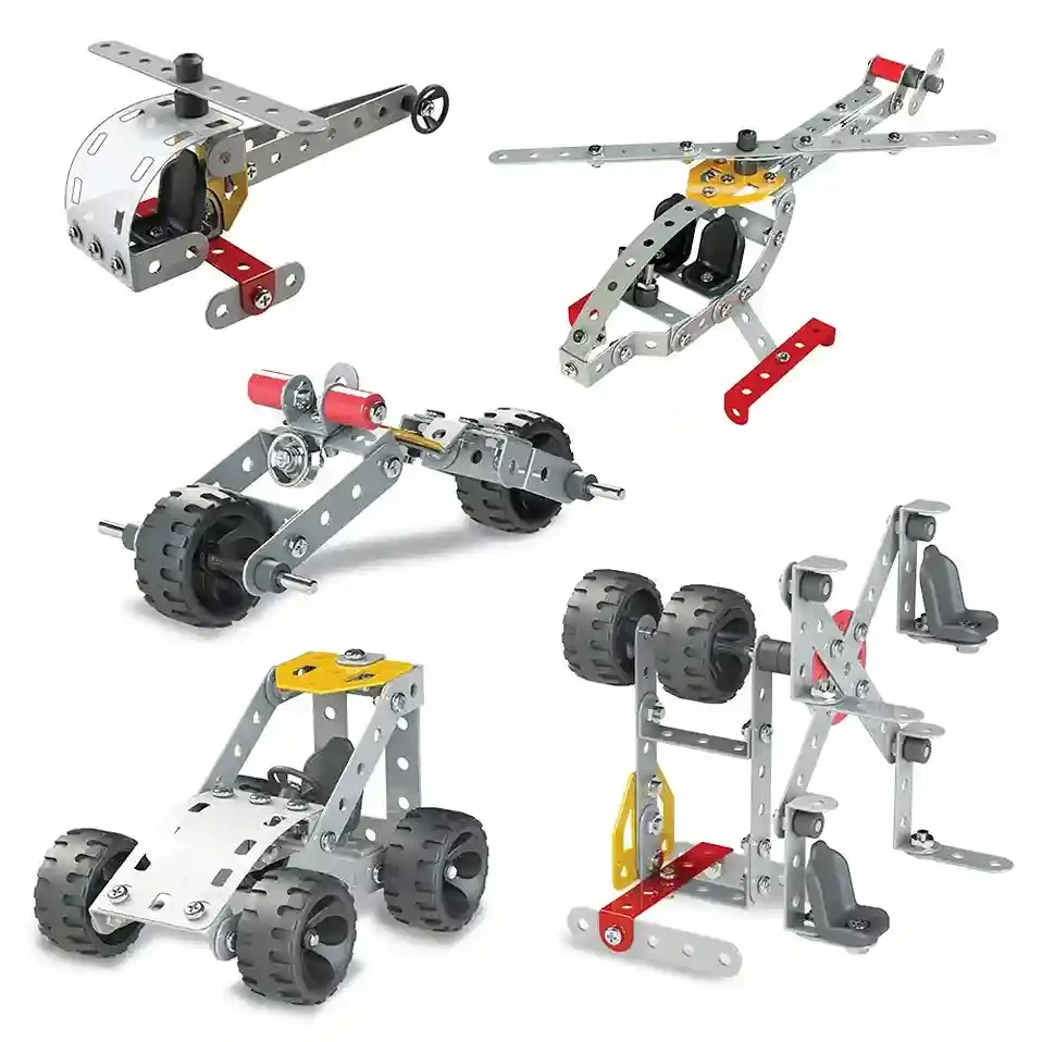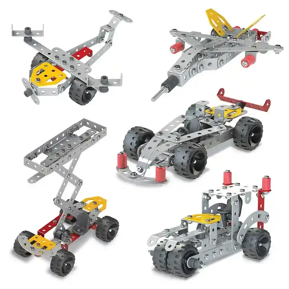 Comprehensive 100+ Piece Set: Includes a variety of parts, nuts, bolts, and tools to assemble different models, keeping children engaged and entertained for hours.