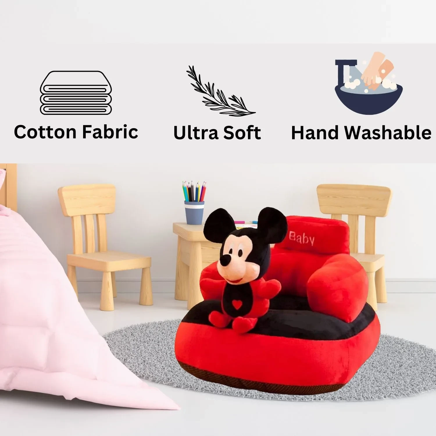 Premium Mickey Mouse Plush Baby Seater Sofa – Soft Cotton Support Chair for Babies (Red & Black)