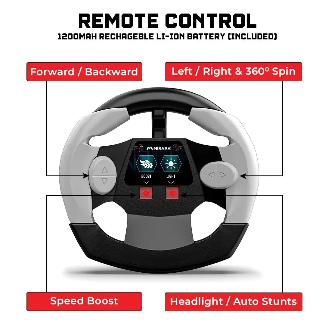 360° SPINS & STUNTS: Perform exciting 360-degree rotations, flips, and drifts with the Mirana Warrior stunt car. It executes incredible stunts during high-speed play, bringing thrilling fun to kids aged 4 and above.