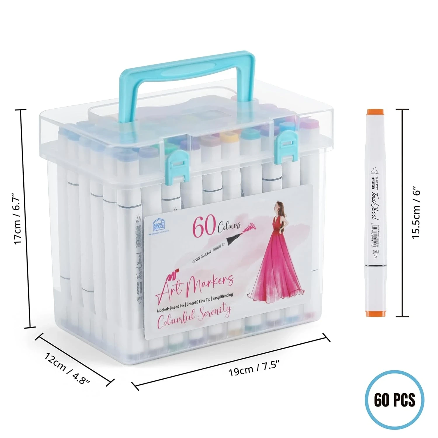 60 Dual-Tip Art Markers Set – Brush & Fine Liners for Kids, Artists, and Gifting